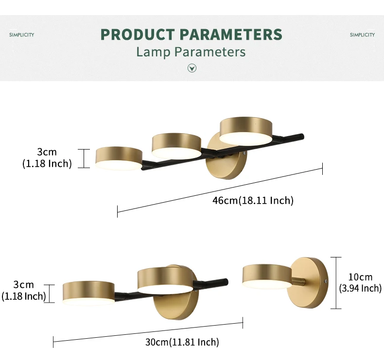 (Источник света бесплатно) скандинавский настенный светодиодный светильник с 12 3 головками, лампа для ванной комнаты, лампа для зеркала, золотой светильник для лестницы, железный настенный светильник для спальни
