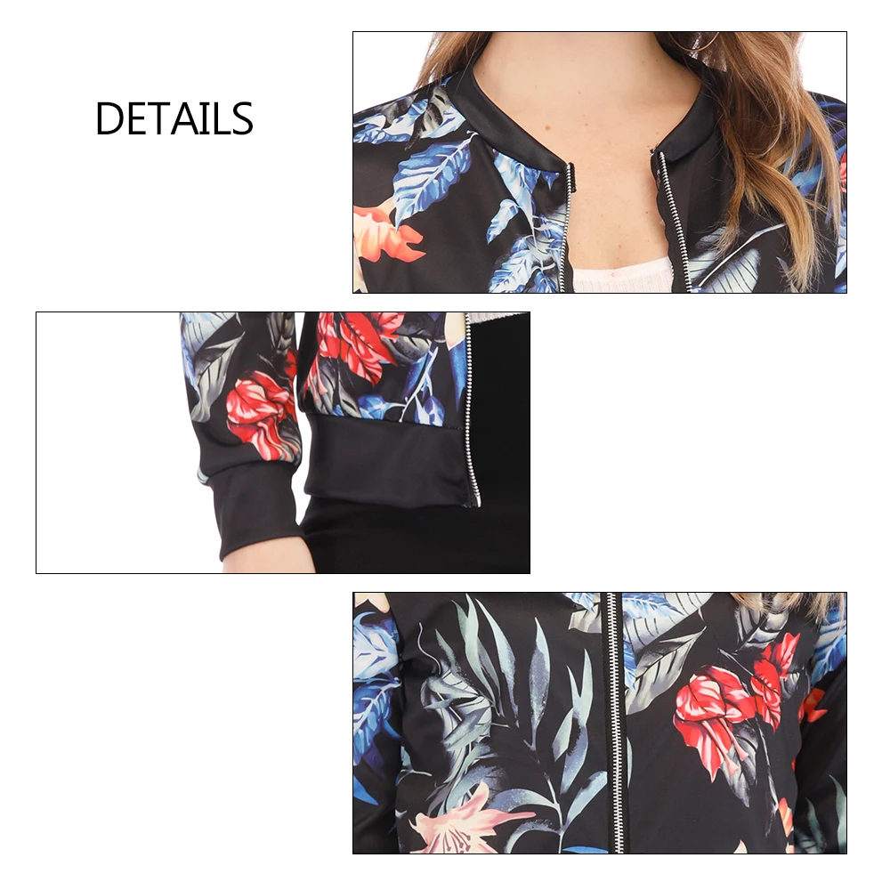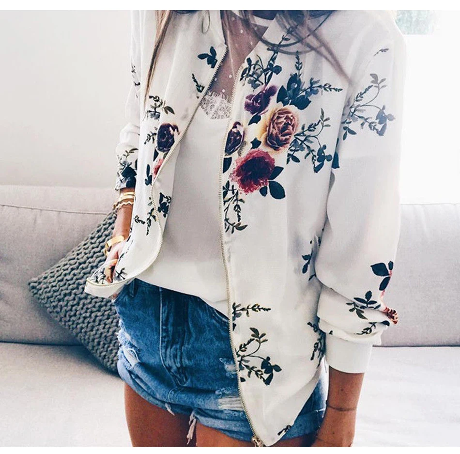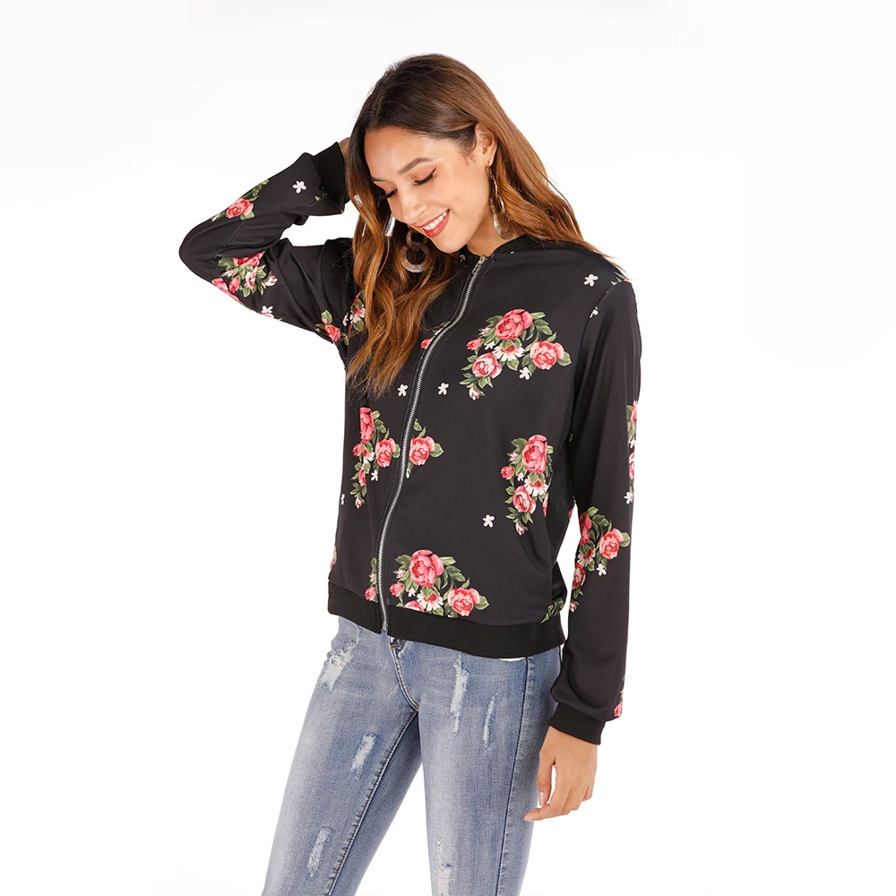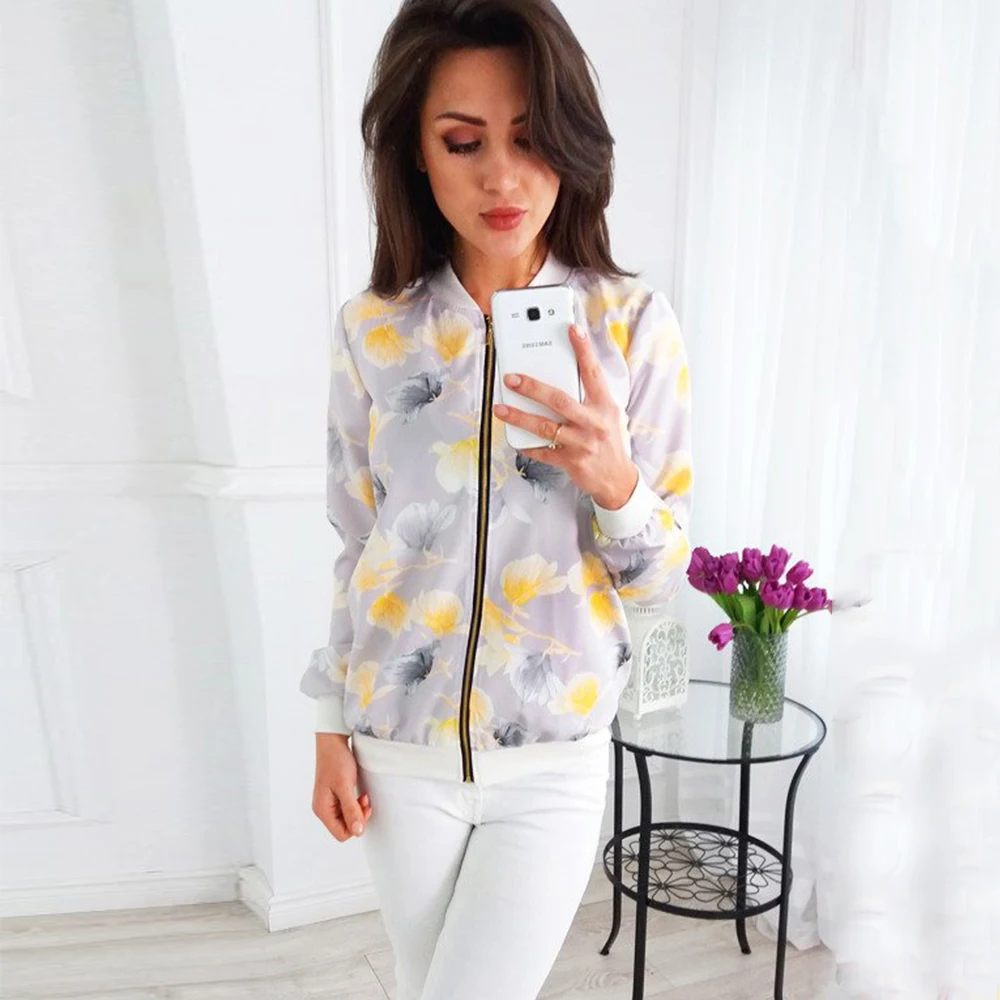 Куртка женская короткая с цветочным принтом, куртка-бомбер на молнии с длинным рукавом, весна размера плюс