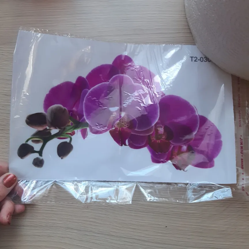 Наклейка красивая, цветы яркие, хорошо упакована, быстро выслали. Спасибо.
