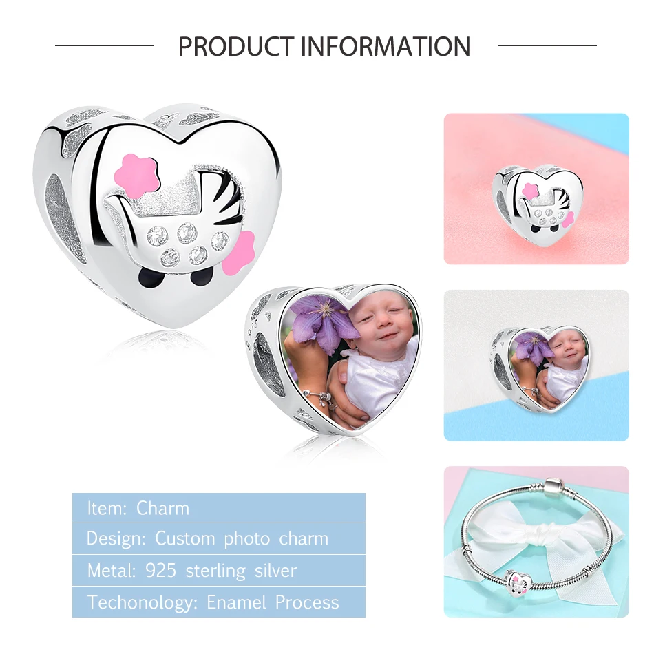 ELESHE модные 925 стерлингового серебра амулет, сердечко любви Форма детское кресло пользовательские фото бусины браслет шарма ювелирных изделий