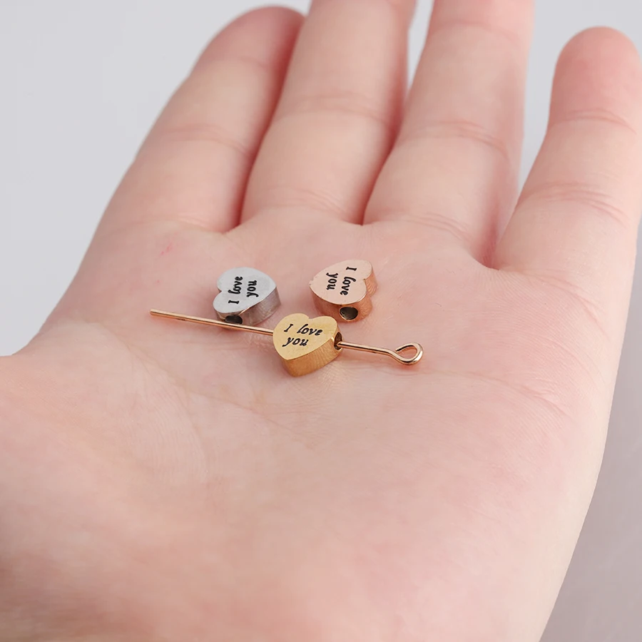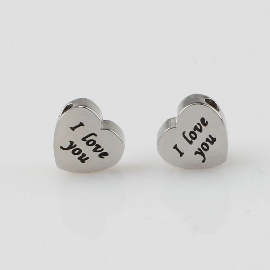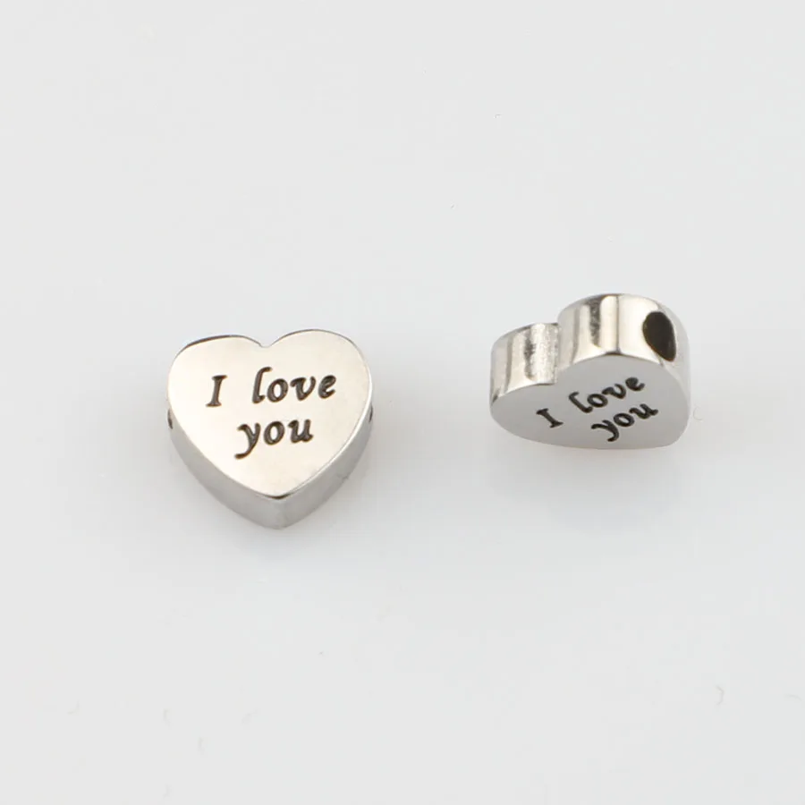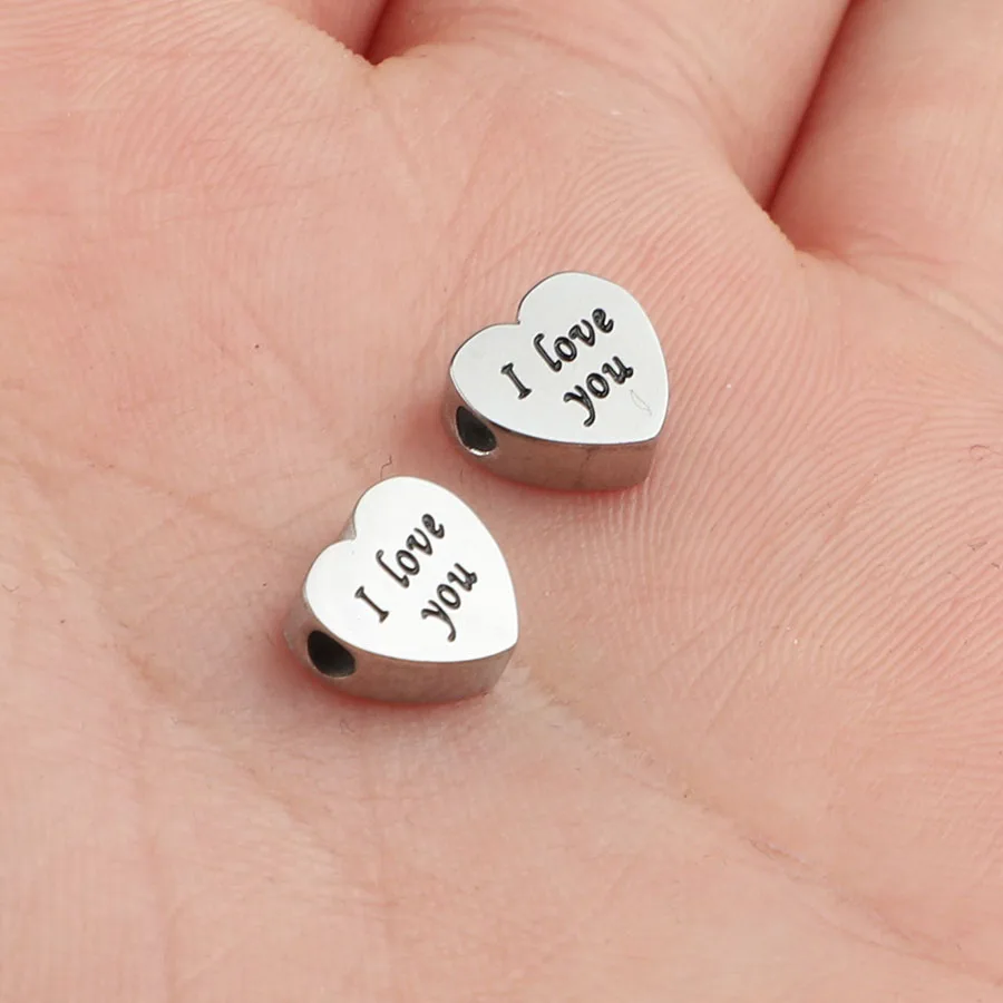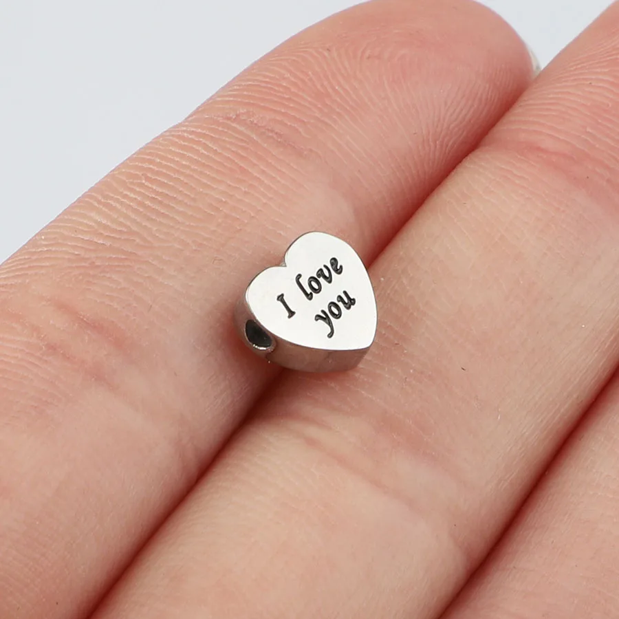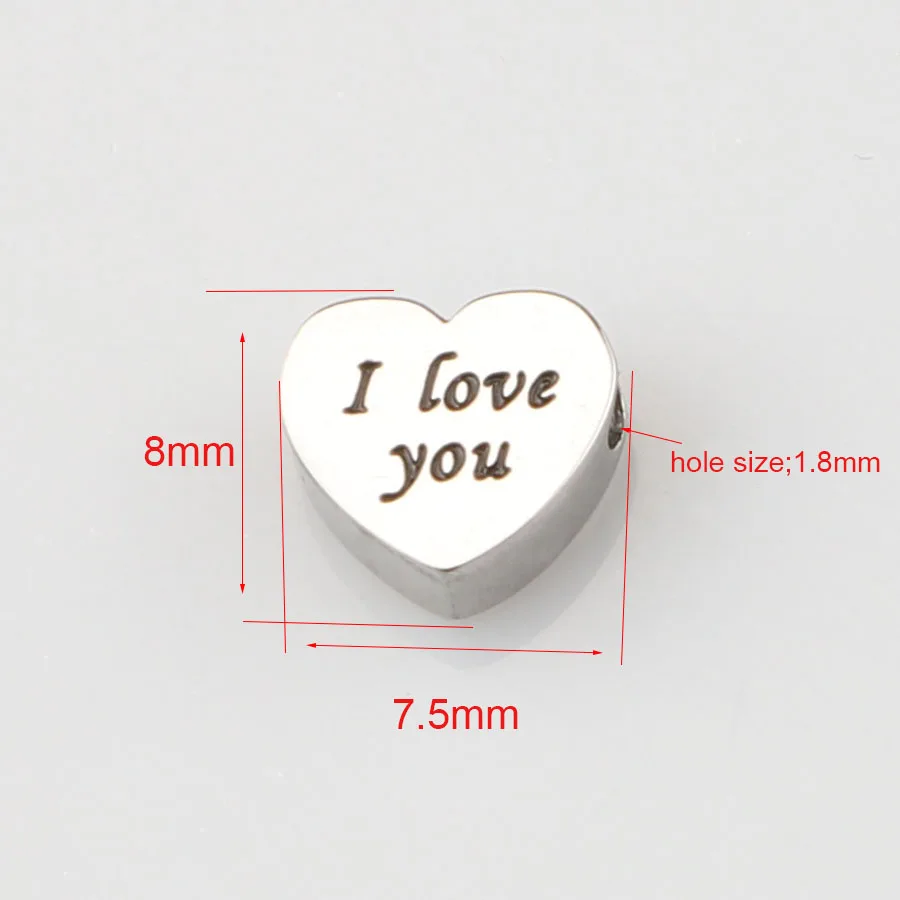 Fnixtar 1,8 мм бусины с отверстиями из нержавеющей стали маленькое сердце любви бисер резной я люблю тебя буквы бусины DIY Подвески 20 шт.лот
