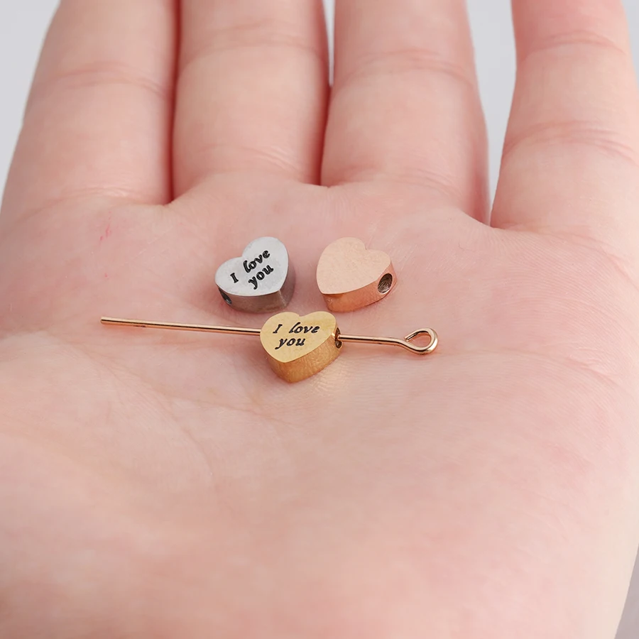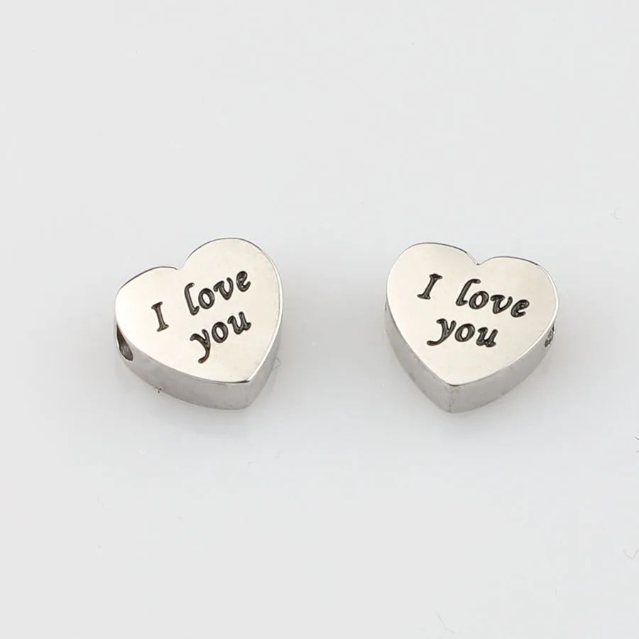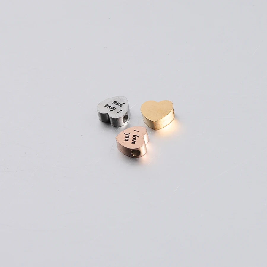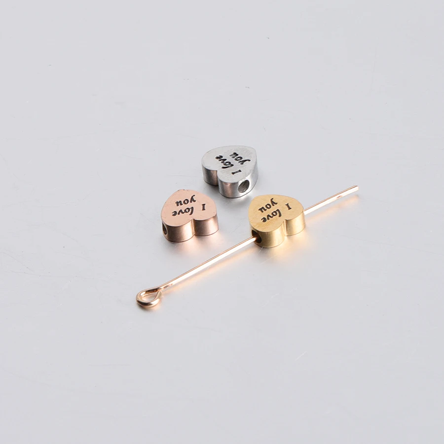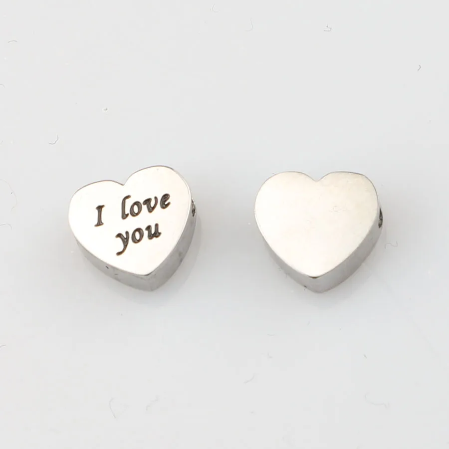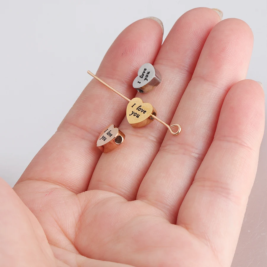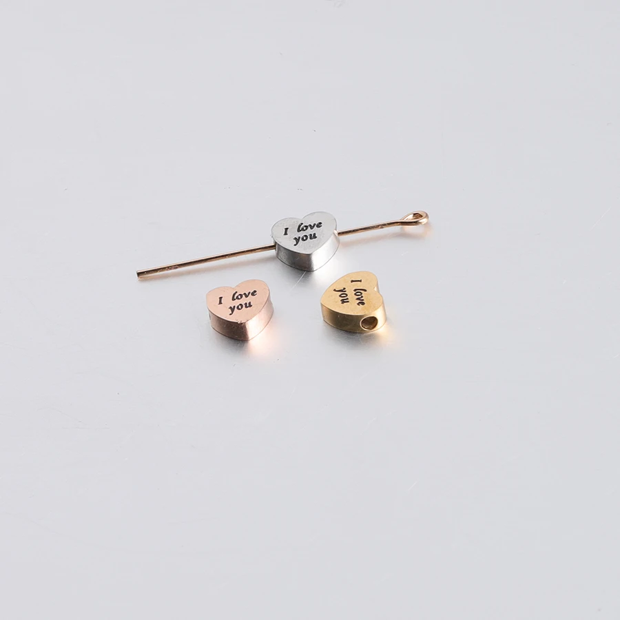 Fnixtar 1,8 мм бусины с отверстиями из нержавеющей стали маленькое сердце любви бисер резной я люблю тебя буквы бусины DIY Подвески 20 шт.лот