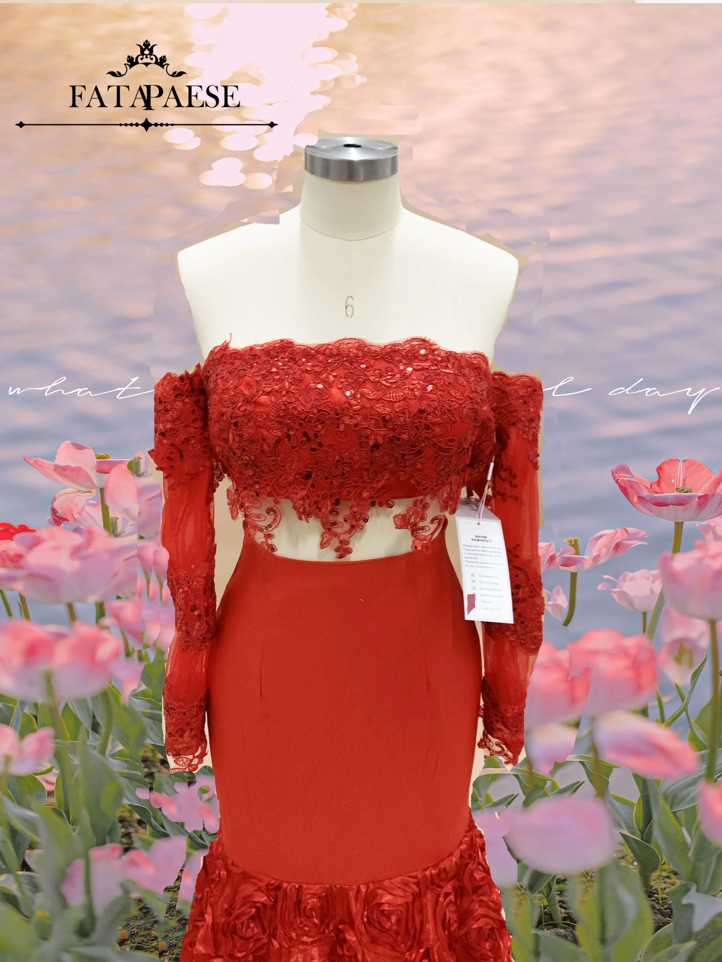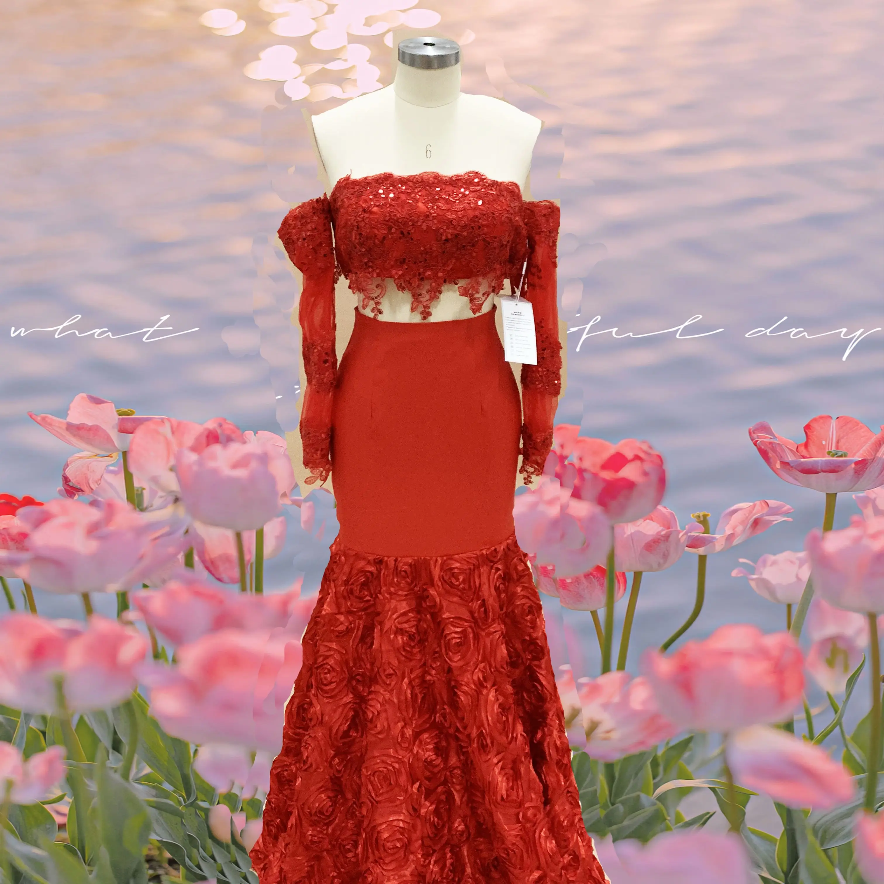Сексуальные красные платья русалки для выпускного вечера в африканском стиле для девушек с длинным рукавом, вечерние платья, длинные элегантные летние платья из двух частей для выпускного вечера