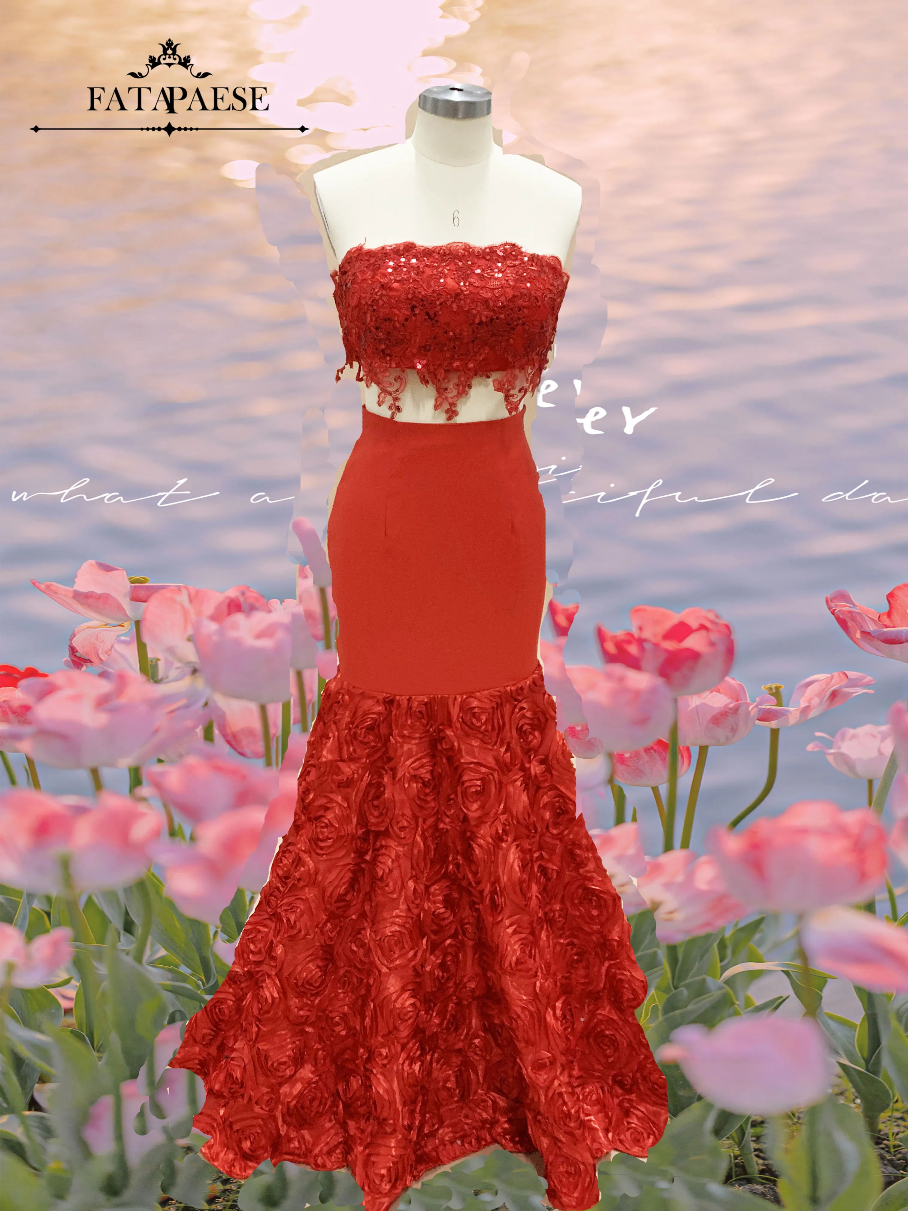 Сексуальное черное платье в африканском стиле с длинными рукавами для девочек; Красное платье русалки для выпускного вечера; es 2020; Вечерние платья с объемными цветами; Длинное платье для выпускного вечера из двух предметов