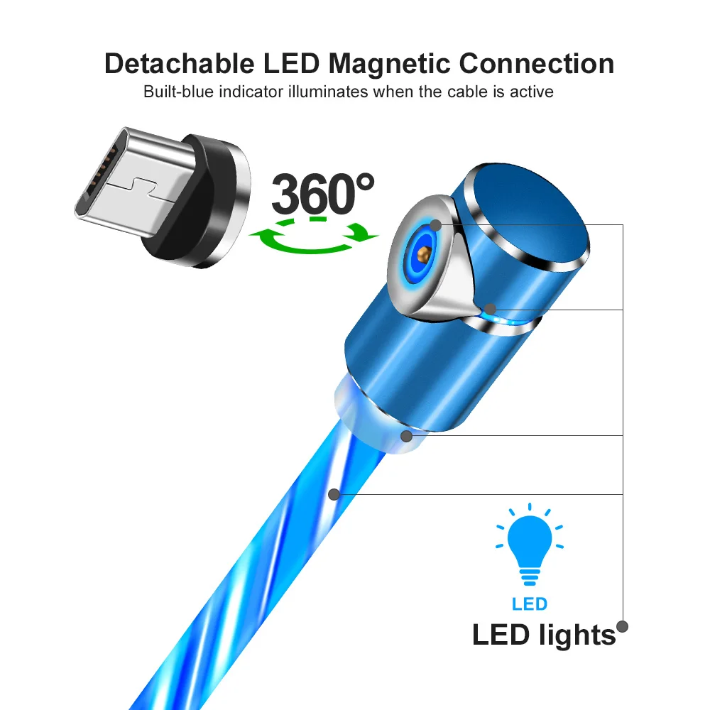 Магнитный светящийся кабель для IOSmicro-USBtype-C, цвета на выбор