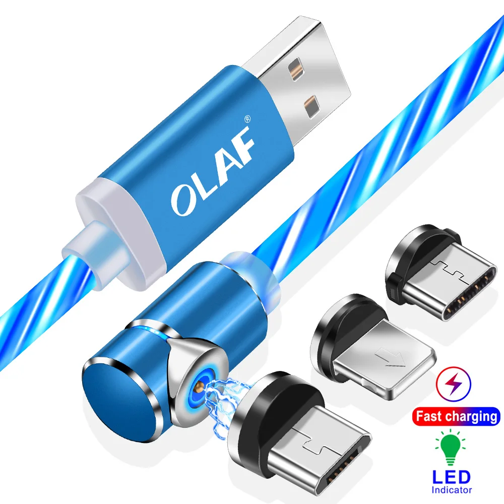 Магнитный кабель Olaf со светодиодной подсветкой, Micro USB, Type-C...