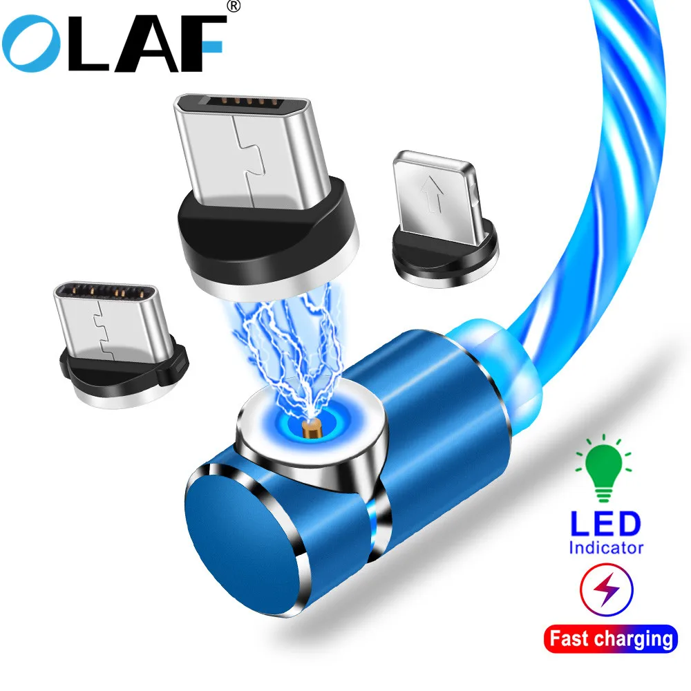 Магнитный USB-кабель OLAF для iPhone, кабели, Светодиодный светящий...