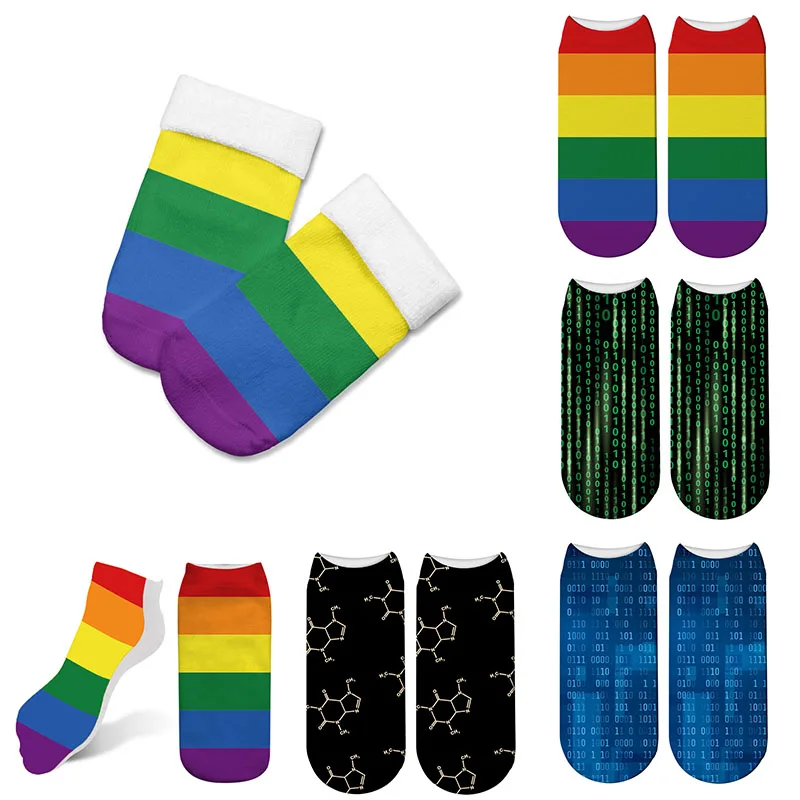 Модные носки с радужным 3D-принтом, женские и мужские хлопковые носки унисекс до щиколотки, Классические Полосатые повседневные носки, модные женские носки в стиле ретро