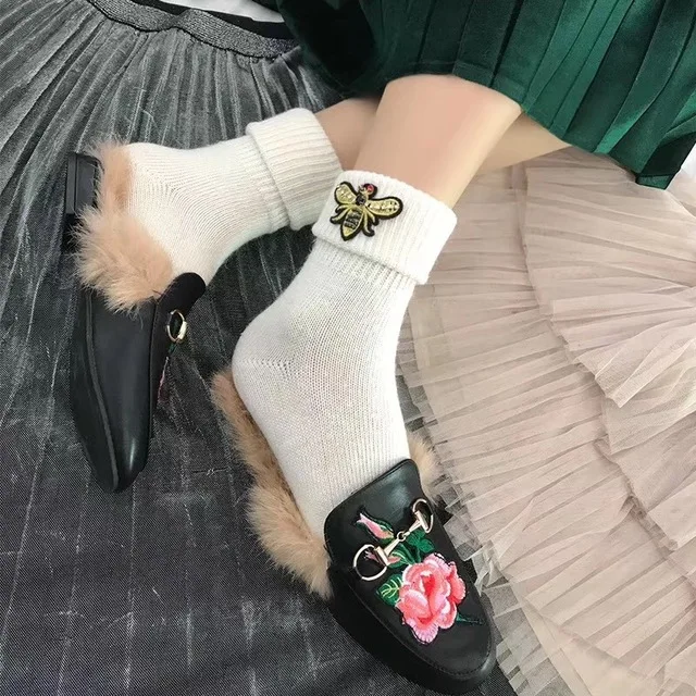 Женские носки без пятки с вышивкой, украшенные бисером и Пчелой, новинка 2019
