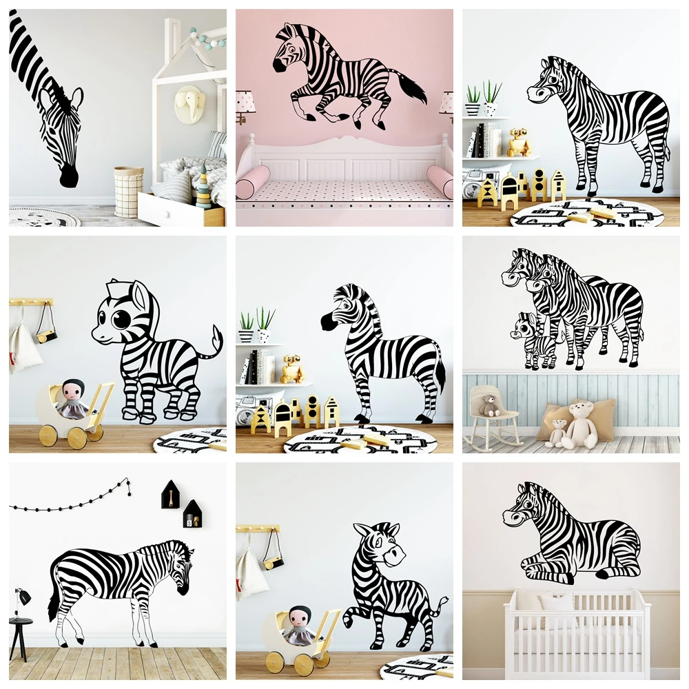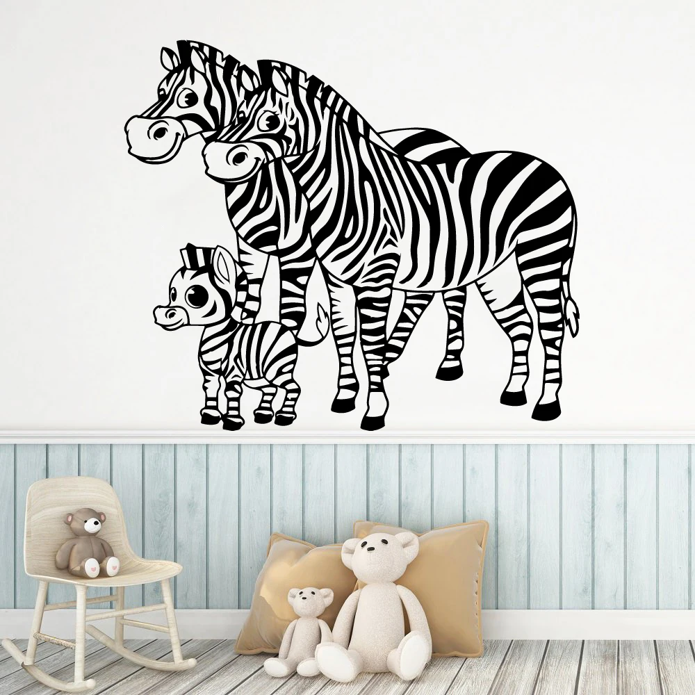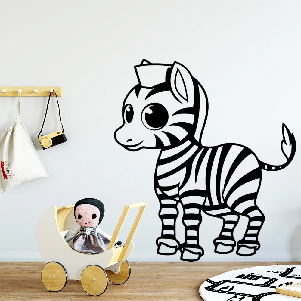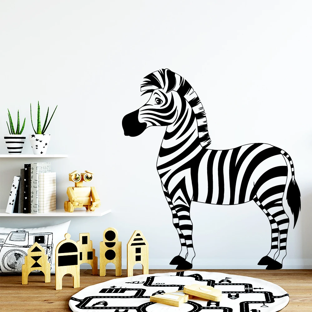Забавная Зебра, виниловые настенные наклейки, Настенный декор для детской комнаты, украшения дома, настенные наклейки, фрески, обои