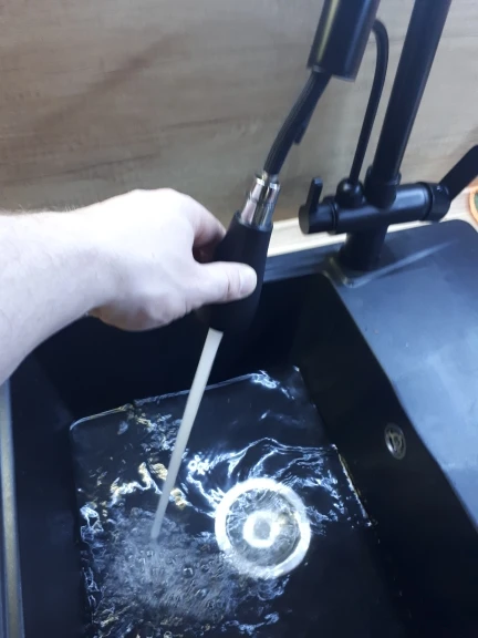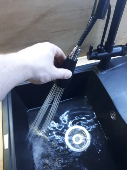 Пользуемся 2 недели. Полёт отличный. Жена в восторге. 2 режима - обычная струя и струя как в душе. Круглая кнопка для временного перекрытия воды, например чтобы перенести смеситель на другую чашу (если в мойке 2 чаши). Переключатель холодной-горячей плавный. Из минусов только то, что нужно лейку в исходное положение возвращать вручную (грузик не дотягивает), но это мелочь. Выглядит дорого-богато. Питьевой кран не подключил ещё.