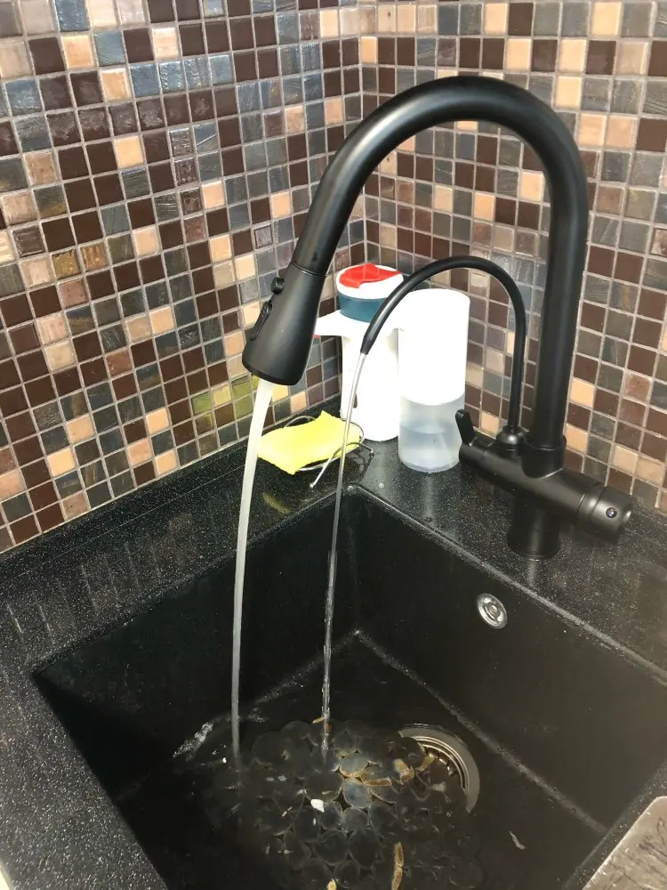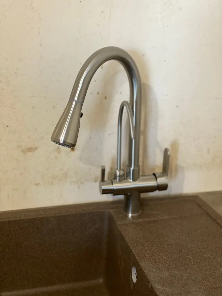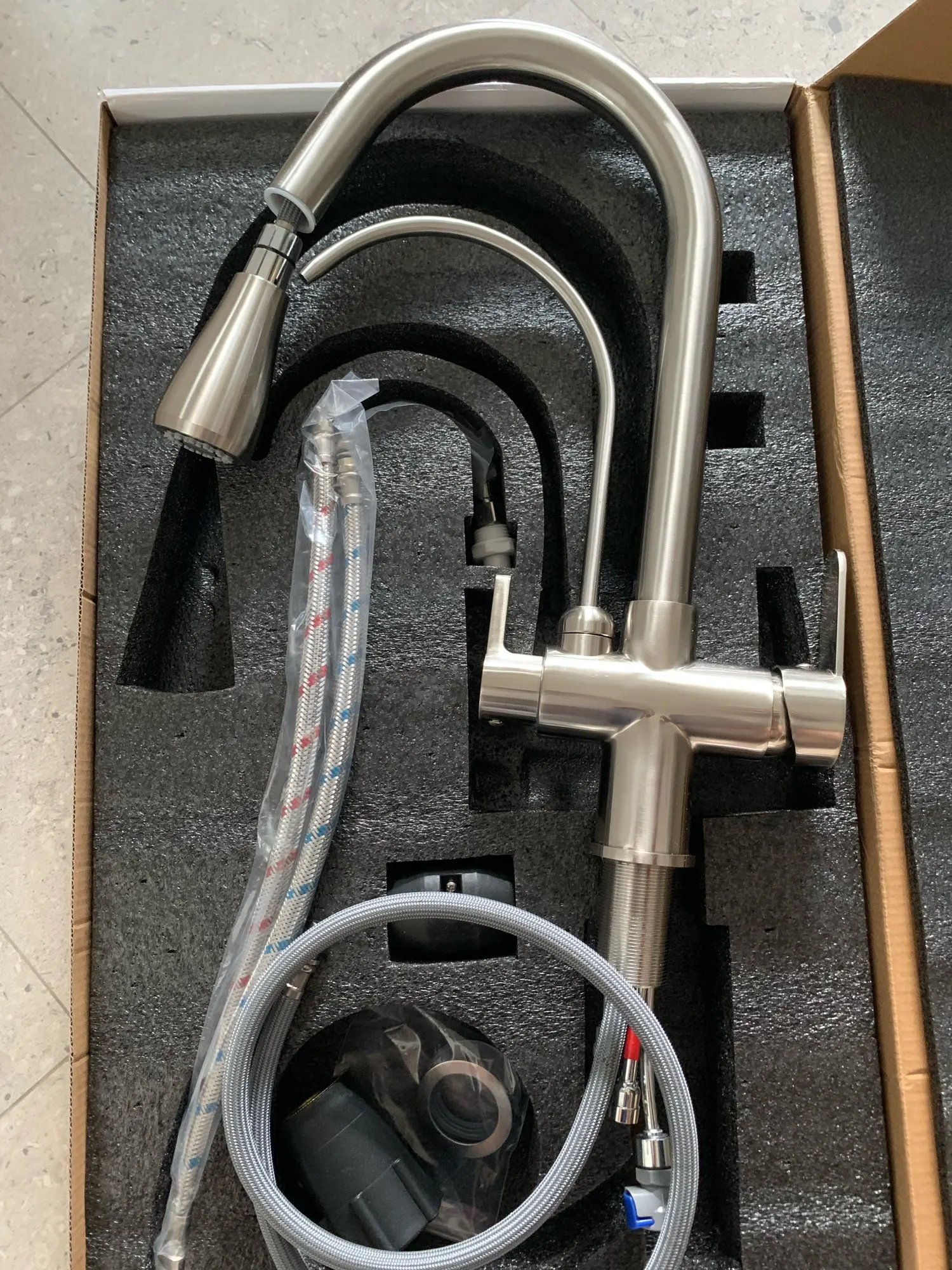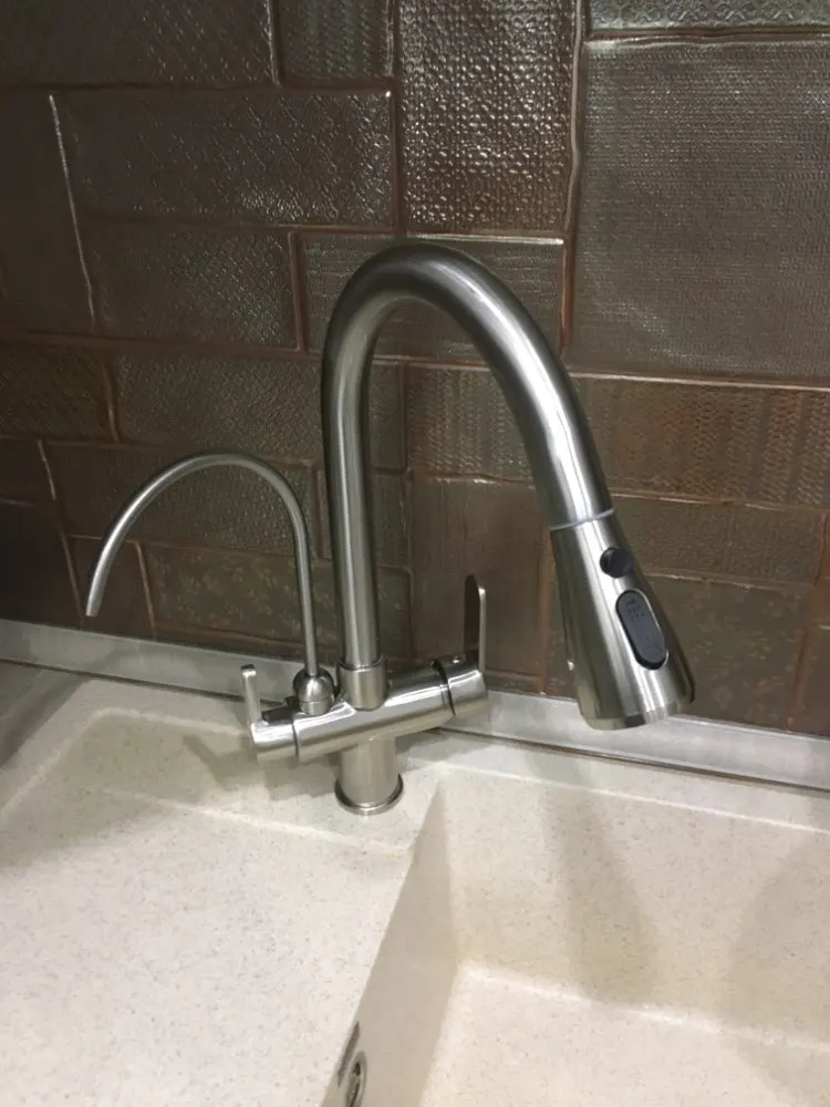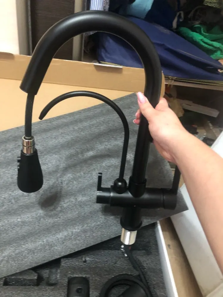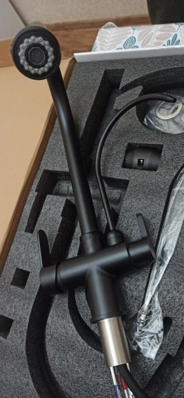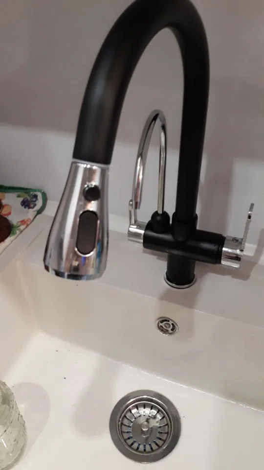 Впринципе - единственное предложение на рынке 3 в 1: Питьевая вода, выдвиженой кран и переключение лейки. Все было необходимо в одном - и товар полностью соответсвует ожиданию. Цвет - приятный матовый. Доставка меньше недели. Капает по капле в час - но на это забил.
