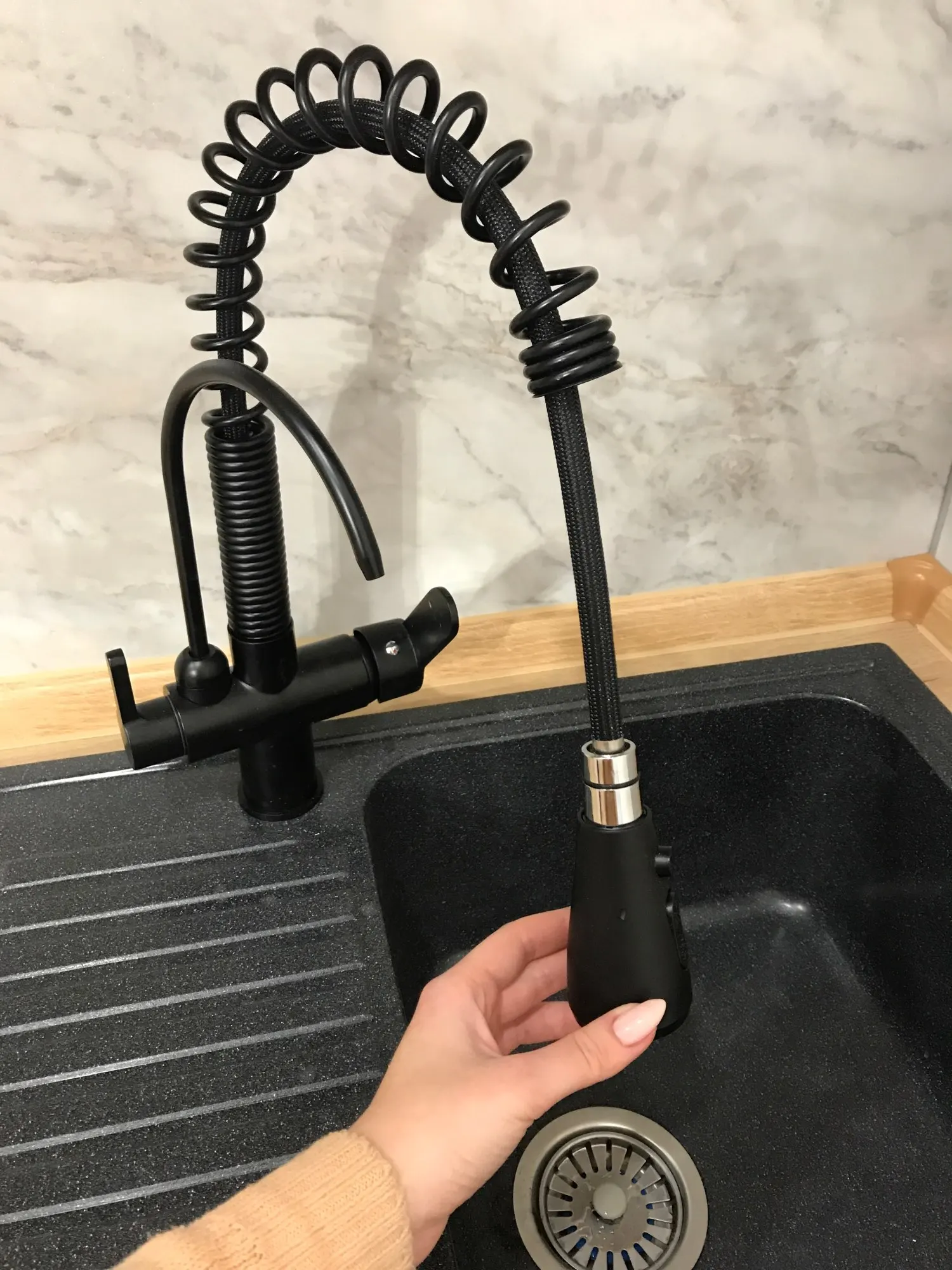 Матовый черный кран Quyanre с фильтром для кухни, выдвижной смеситель с поворотом на 360 градусов, тройной, для раковины, кухонный кран
