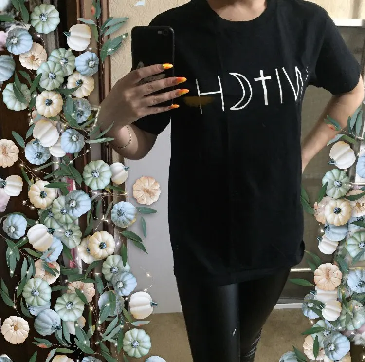 Футболка с ведьмой на Хэллоуин, забавная Женская мода, лозунг, унисекс, хлопок, повседневные футболки, крест, Луна, графический подарок, гранж, топ, shirts-J020