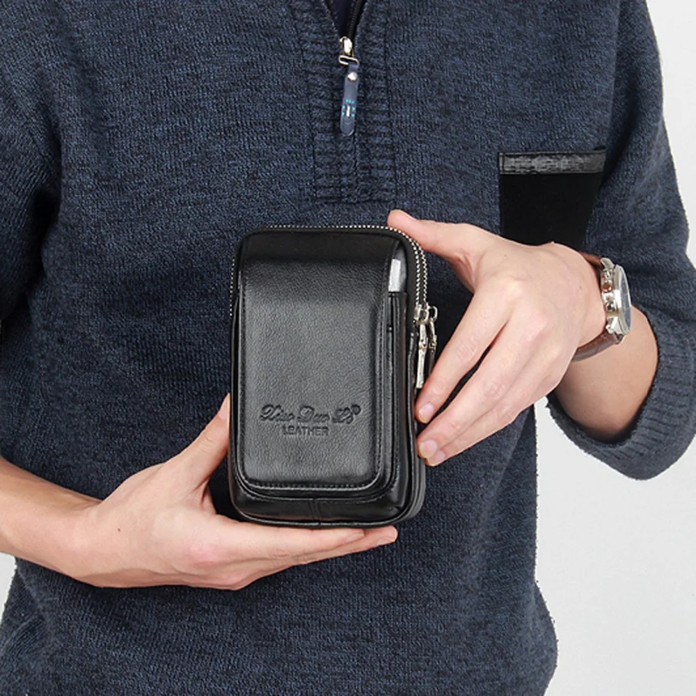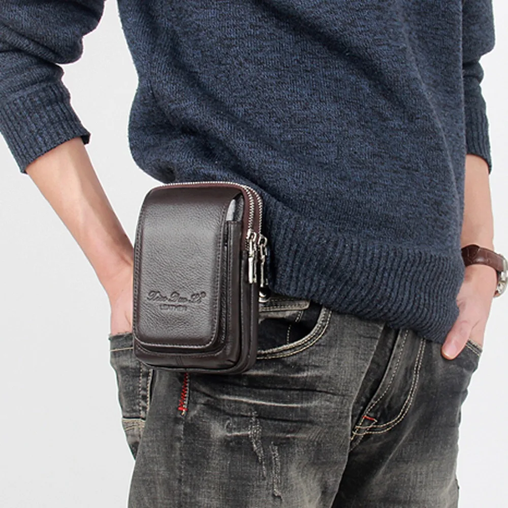 Сумка поясная мужская из натуральной кожи, с отделением для монет и сигарет, мобильный телефон