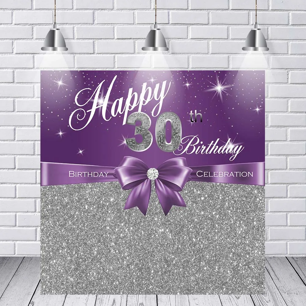 Виниловый фон для фотосъемки для взрослых с изображением роскошной леди на 30-й день рождения Декор фиолетовый серебристый баннер с блестками фон для фотостудии