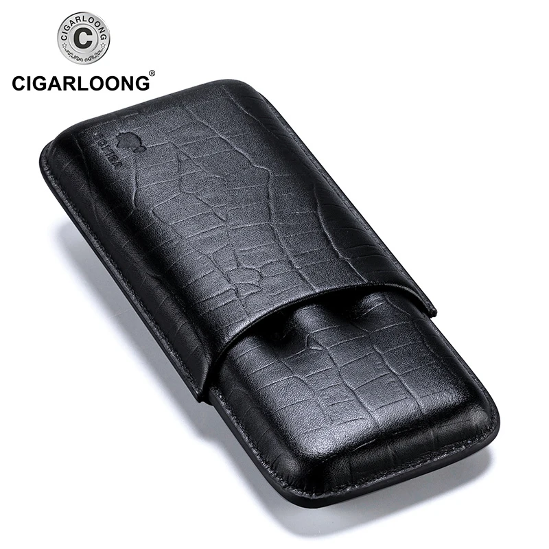 COHIBA Черный крокодиловый кожаный чехол для сигар, хьюмидор, 3 трубки, портативный дорожный резак для сигар из нержавеющей стали