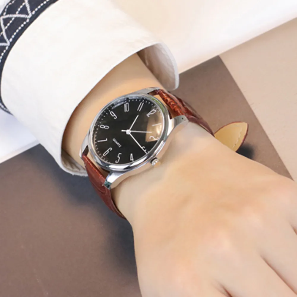 Мужские Простые деловые Модные кварцевые наручные часы с кожаным ре...