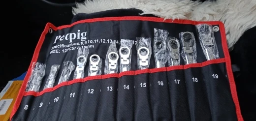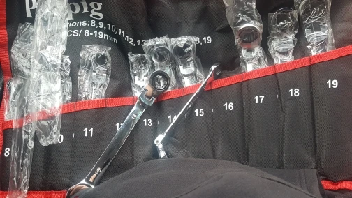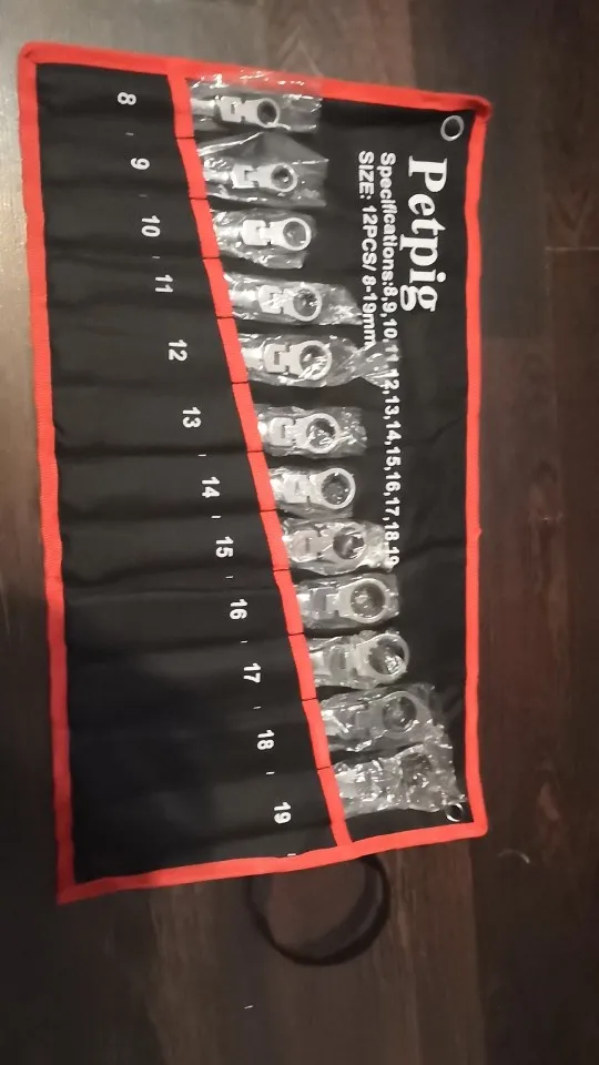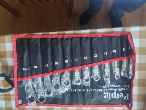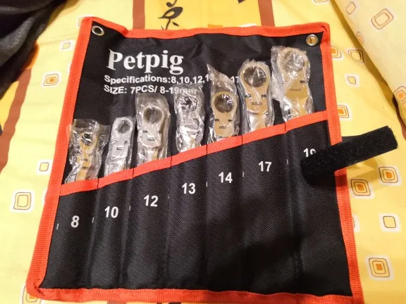 Отличный набор качественных ключей. Отсутствие люфтов, хорошее хромирование, грамотно сделанная трещётка, широкий диапазон размеров, рекомендую набор из 12 ключей. Удобный чехол - можно повесить при работе, потом свернуть в трубку с завязкой, очень удобно. Быстрая доставка. Продавца рекомендую.