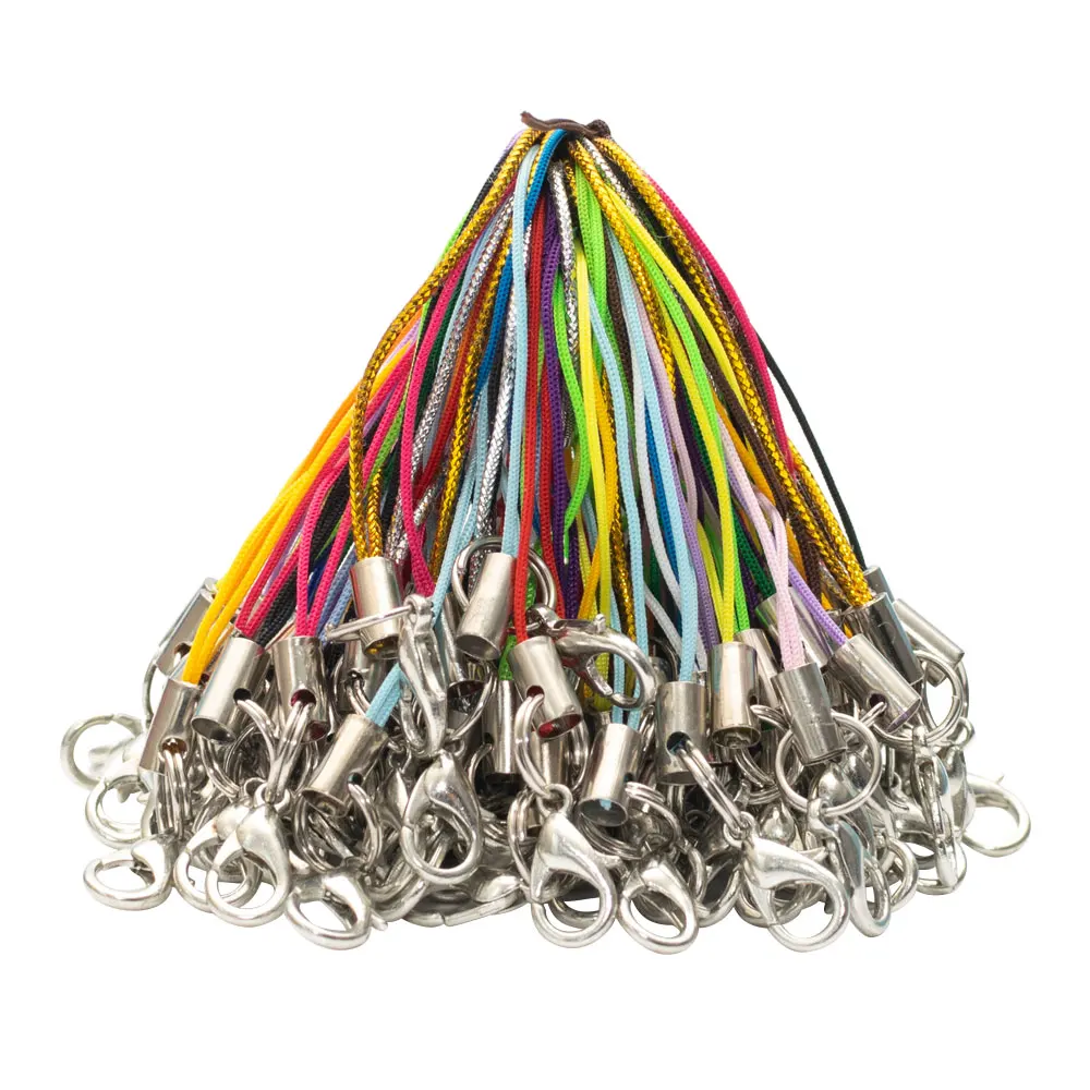 100 шт./лот, многоцветная застежка-карабин, ремешок, шнур, мобильные ремни, Очаровательная нейлоновая цепочка для ключей, сделай сам, ювелирное изделие