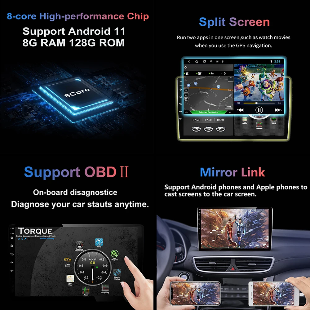 8-ядерный высокопроизводительный чип поддерживает Android 11 8G RAM и 128G ROM