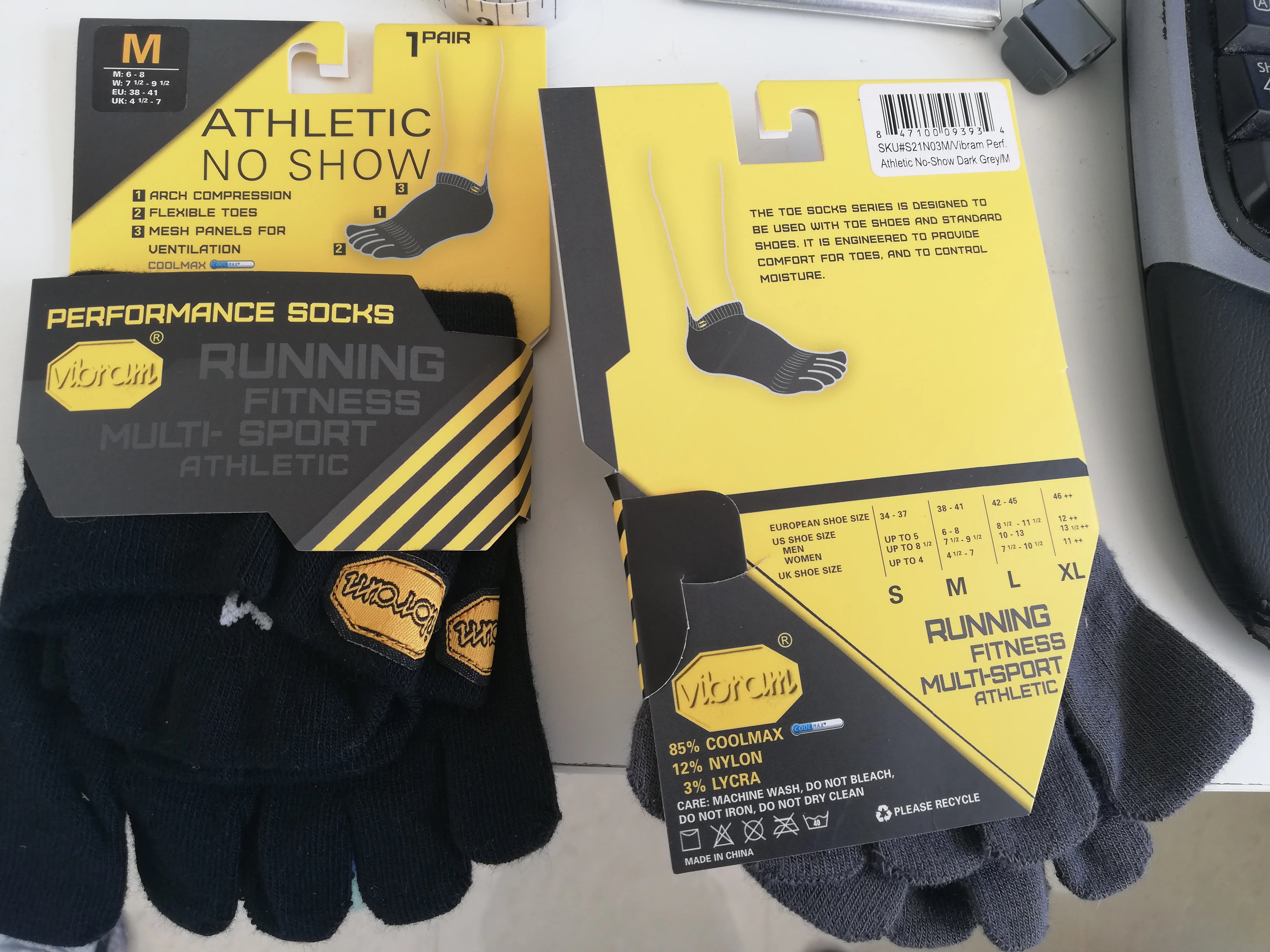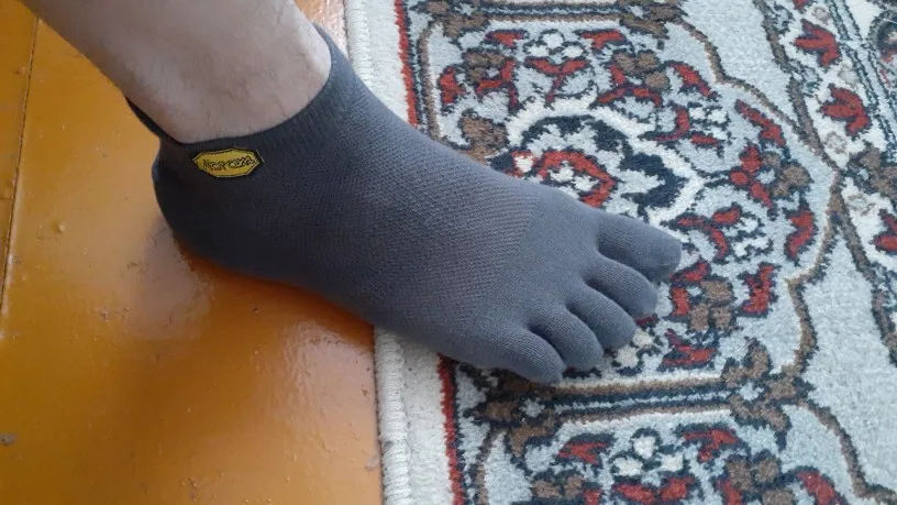 Прикольные носки! Дороговато конечно, но специально взял оригинальные Вибрам чтоб сразу эталон познать. Немного не привычно но очень удобные. Пока просто померил, с обувью ещё не одевал. На фото светло-серые, по факту тёмно-серые, да и не суть.