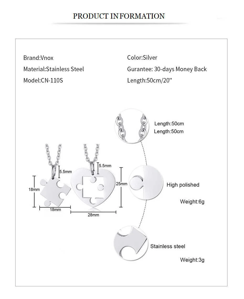 Vnox 2 шт.компл. Подвески с сердечками для женщин и мужчин никогда не выцветают из нержавеющей стали пара ожерелья Подарок на годовщину
