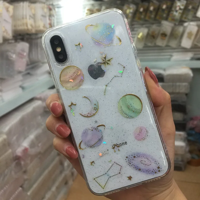 Роскошный блестящий симпатичный чехол для iPhone 12 11 Pro Max X XR XS Max 7 8 6 S Plus SE 2020, мягкий силиконовый чехол со звездой и Луной icon star icon star icon star icon star icon star