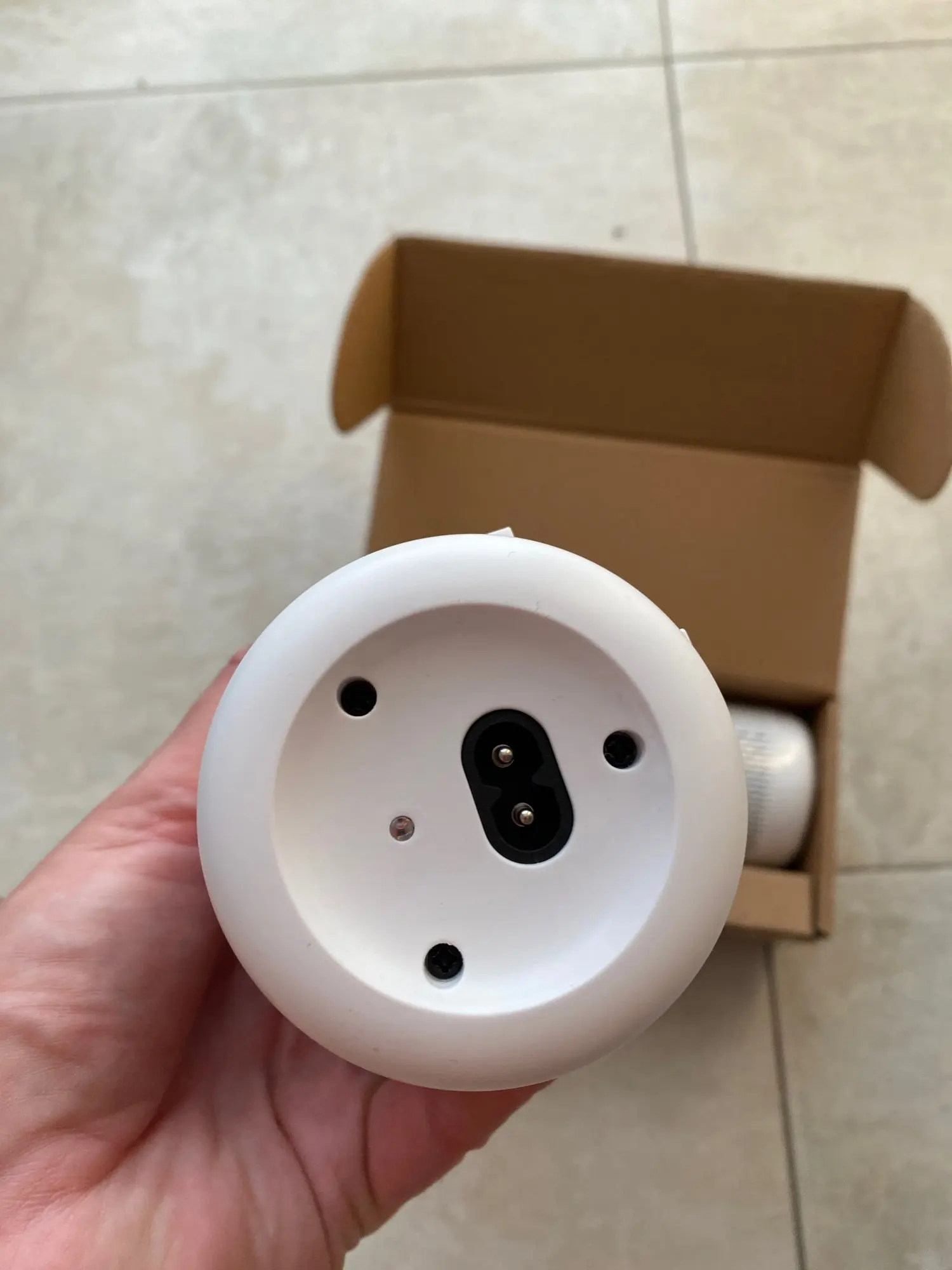 Наконец быстрая доставка. 15 дней с рождественскими вечеринками наполовину, чтобы иметь ее дома. Продавец входит в европейскую розетку внутри коробки.