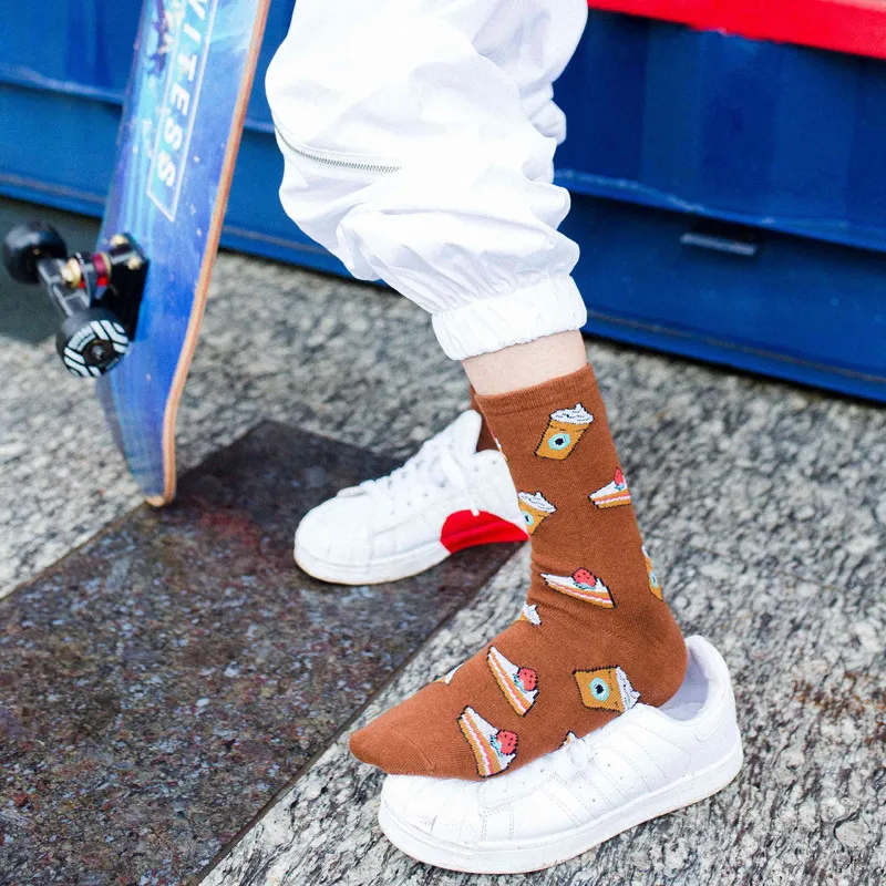 Забавные весенние корейские коробки вкусная еда гамбургер торт барабанные палочки уличный стиль движения носки для женщин