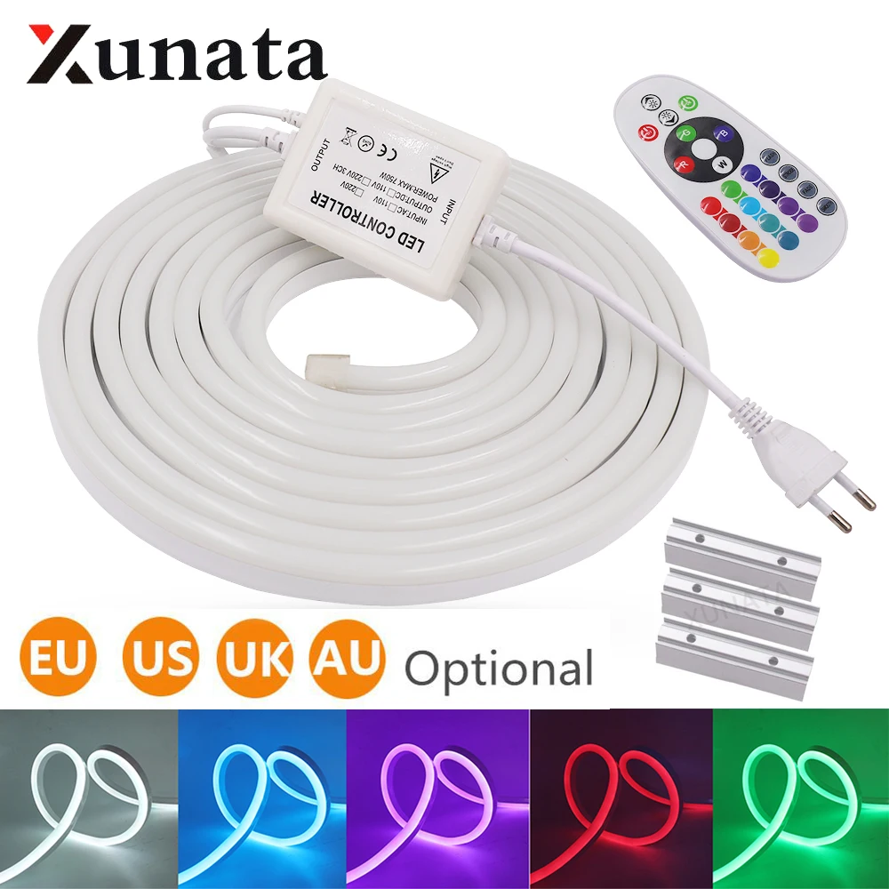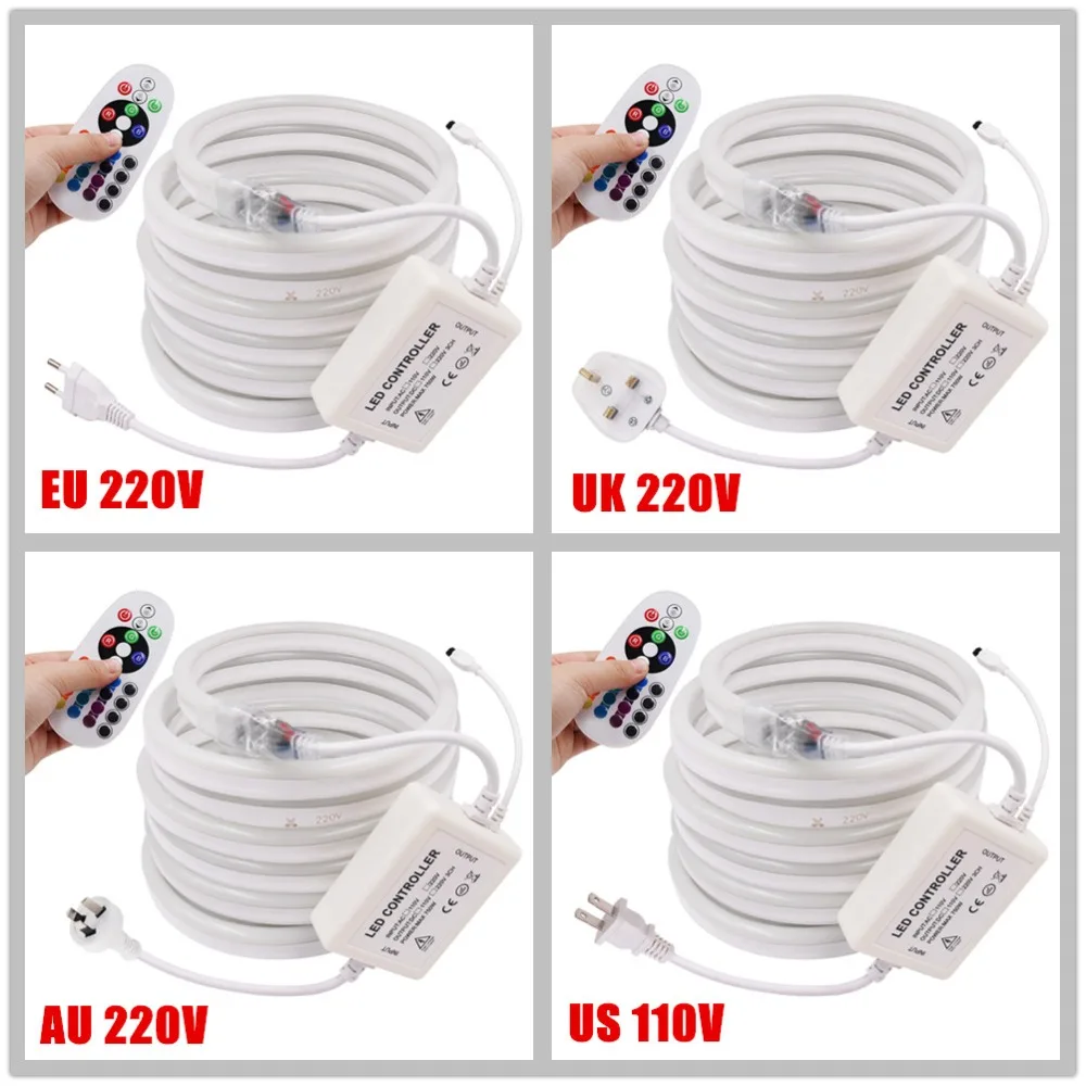 220V 110V RGB неоновые полосы Водонепроницаемый IP67 крытый и открытый светильник ing гибкий светодиодный неон светильник с лампой ИК 24Key пульт дистанционного управления