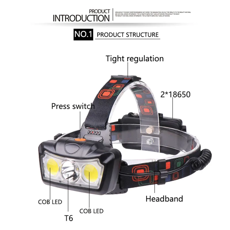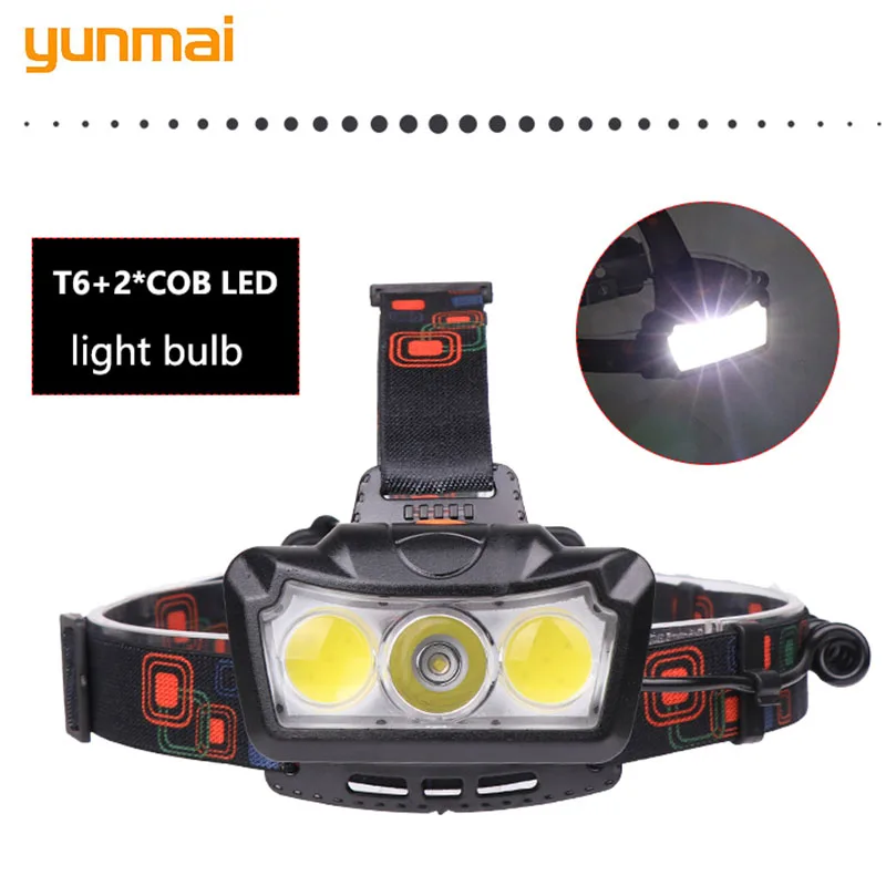 Светодиодный налобный фонарь YUNMAI, 1 шт. T6 + 2 шт., 1000 лм, суперяркий, с зарядным устройством, для кемпинга, рыбалки