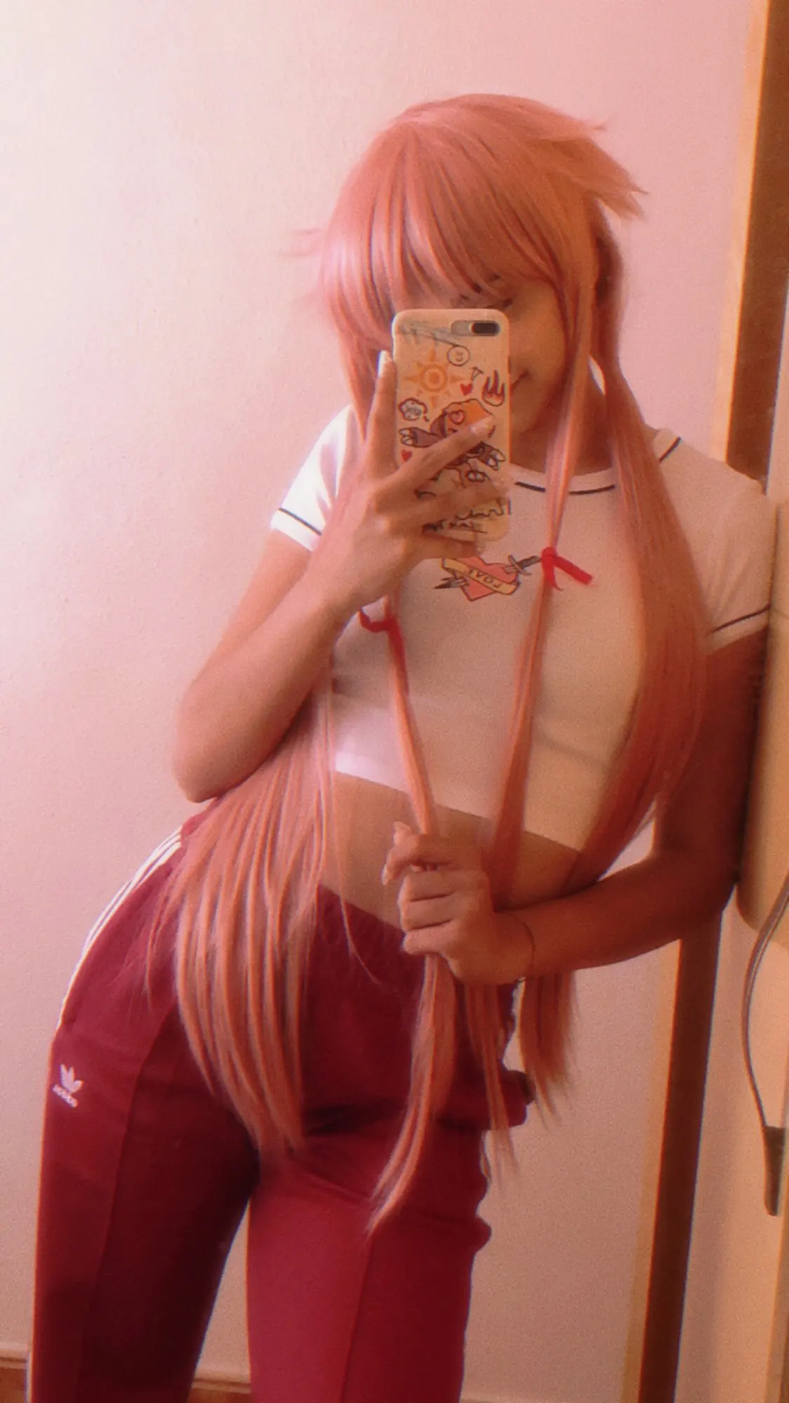 Парик для косплея Юно гасай, термостойкий розовый парик из Дневника будущего, с шапочкой, 36 дюймов, 90 см