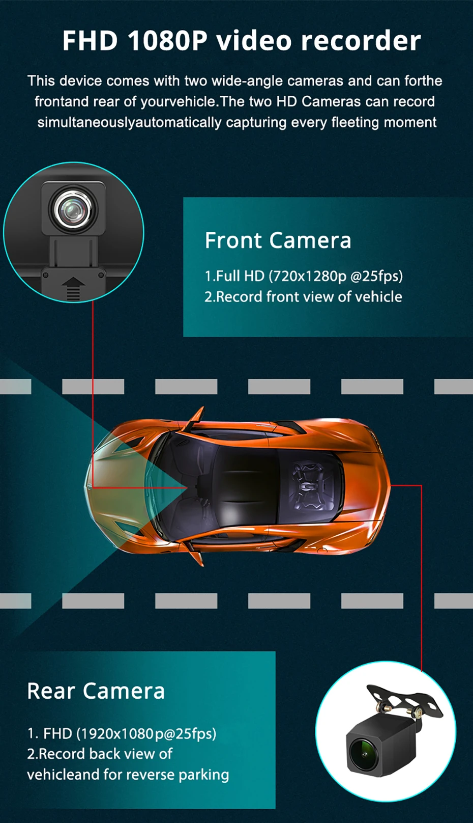 Более качественные изображения помогают определить важные детали, такие как номерные знаки, действия водителя и дорожные особенности, которые могут подтвердить вашу невинность.Спереди: 1280*720P; Сзади 1920*1080P