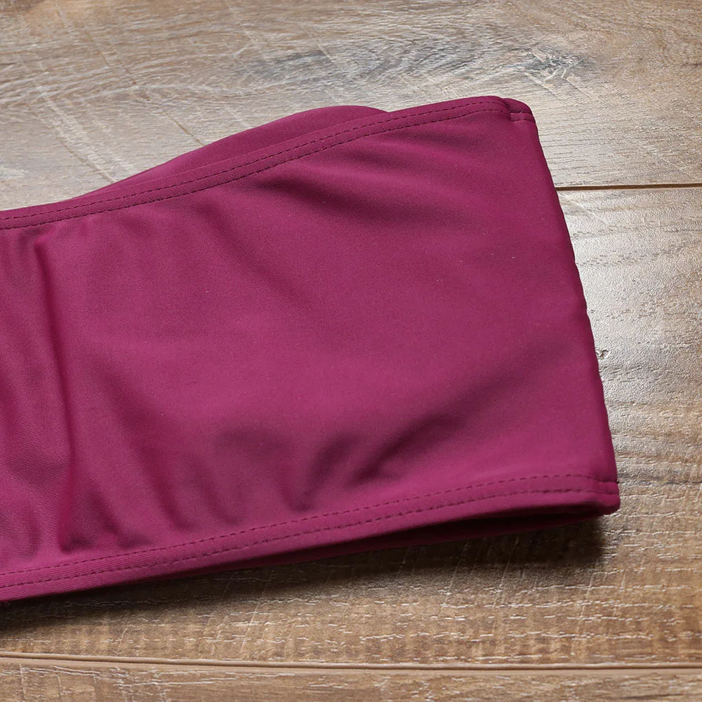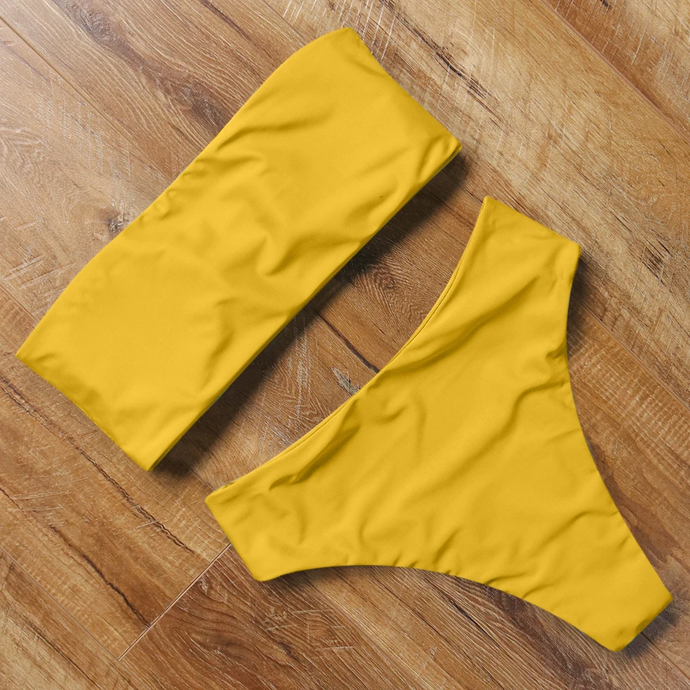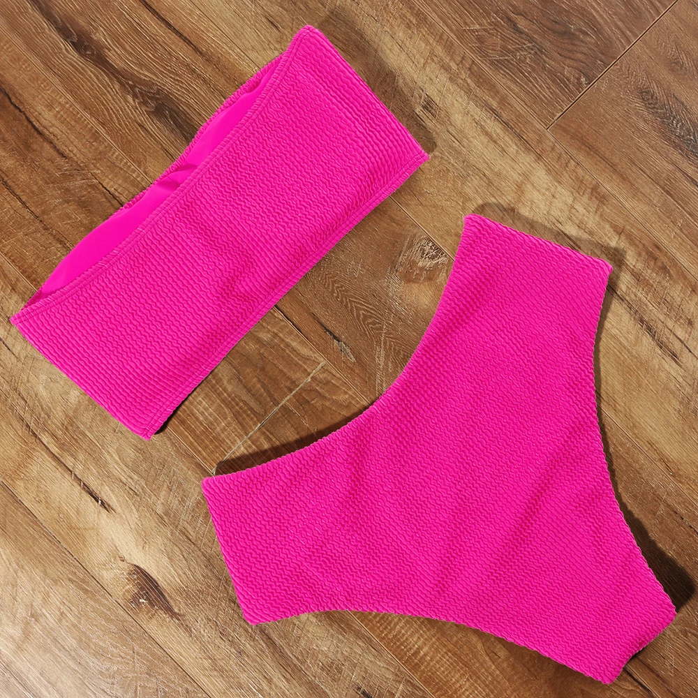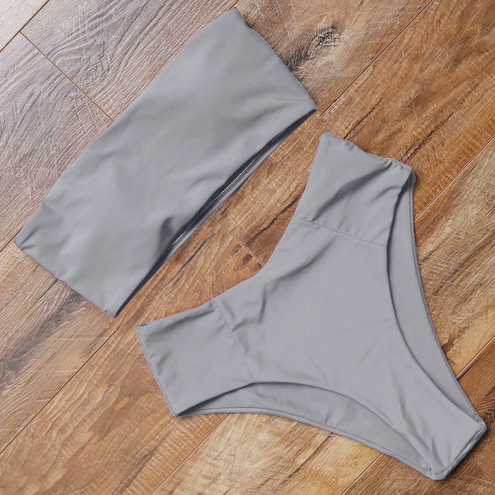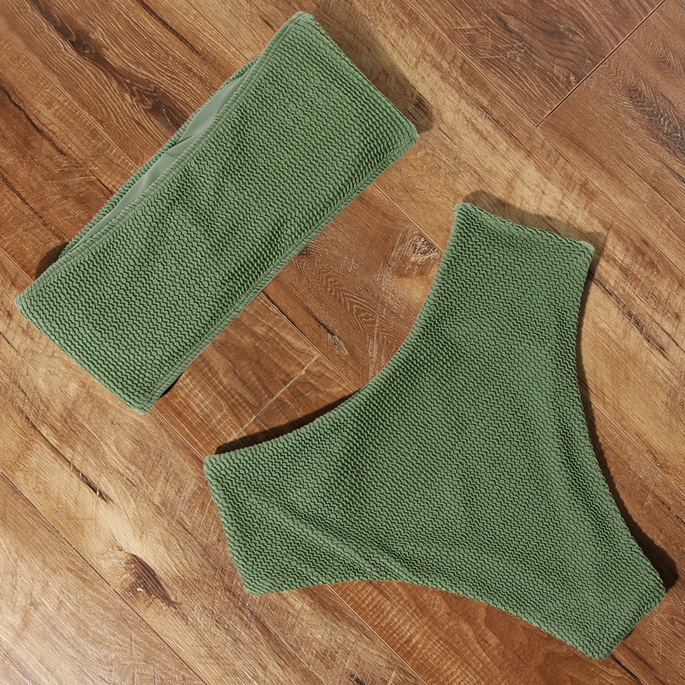 Купальник-бикини женский, с высокой талией, пуш-ап, однотонный, летний, 2021