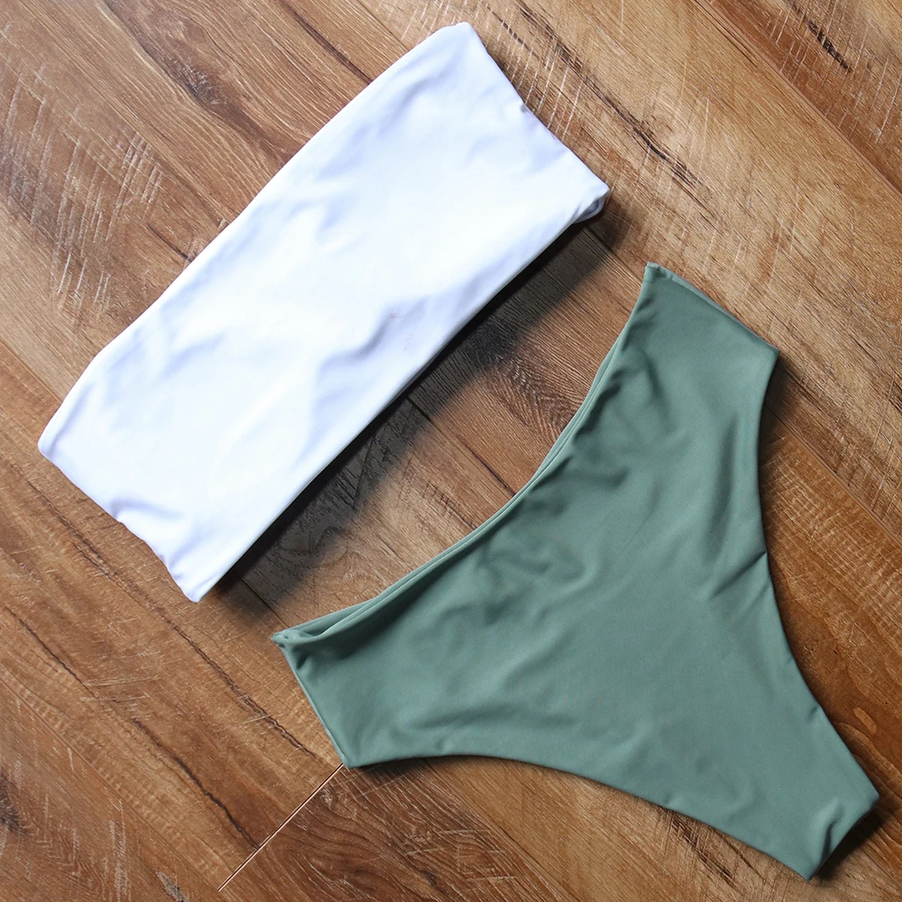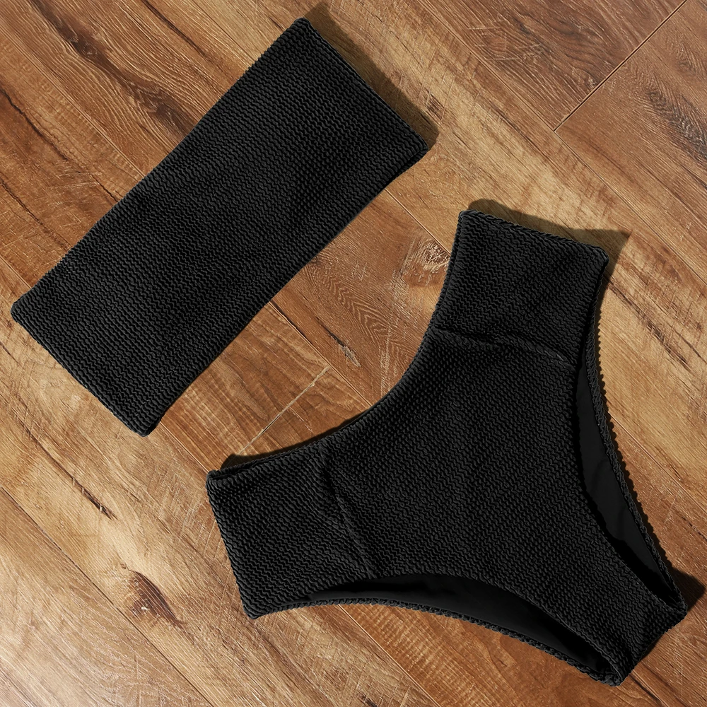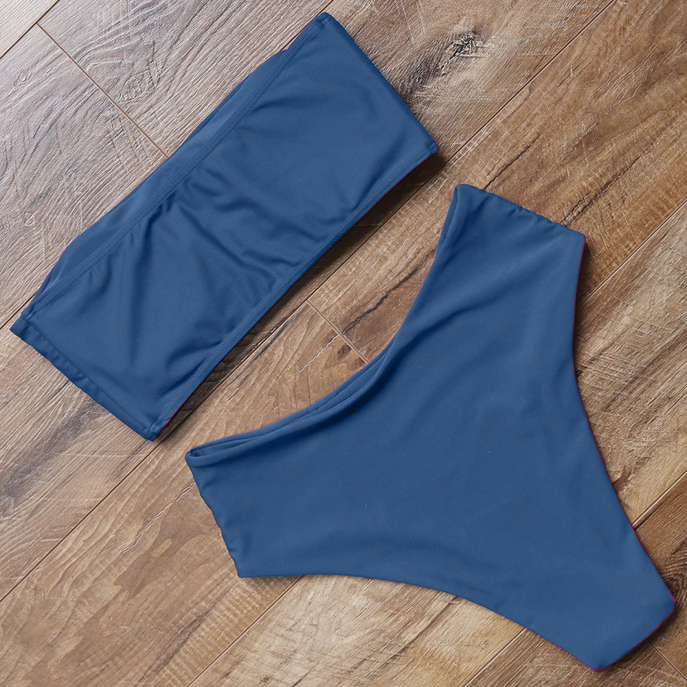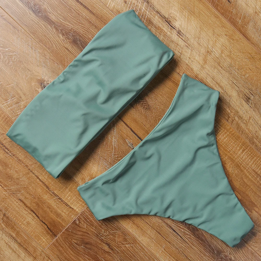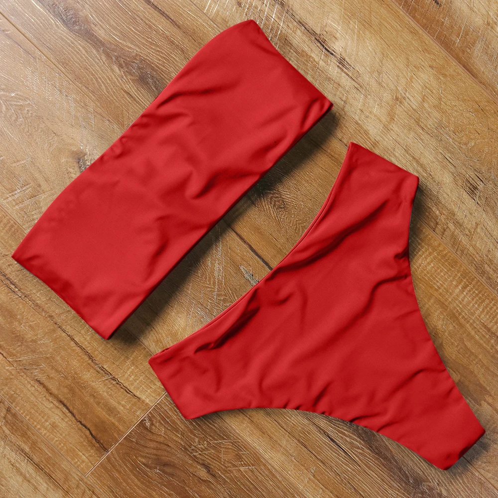 Купальник-бикини женский, с высокой талией, пуш-ап, однотонный, летний, 2021