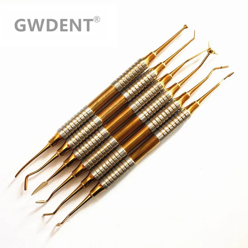 6 шт. зубная композитная смола, наполнитель шпатель с титановым покрытием, набор наполнителя из смолы, набор для восстановления толстой ручки, стоматологический инструмент