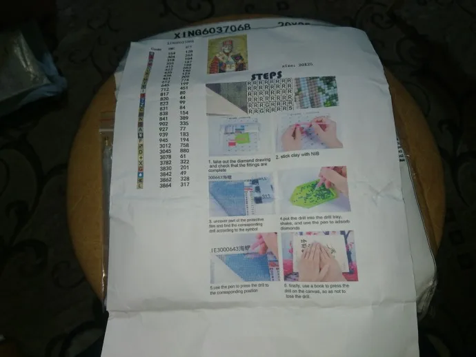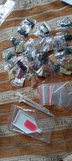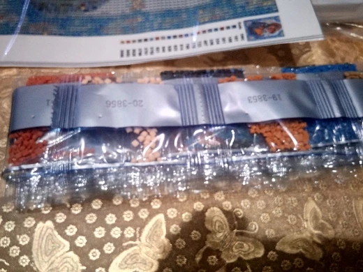 Картина конечно помятая, но думаю что в процессе разгладится. Стразики расфасованы и пронумерованы, плюс положили несколько зип пакетов пустых. Картина закрыта сверху листом, надо отклеивать чтобы клеить стразы. Доставка быстрая. Как закончу работу, покажу результат. Спасибо огромное, с наступающим вас!