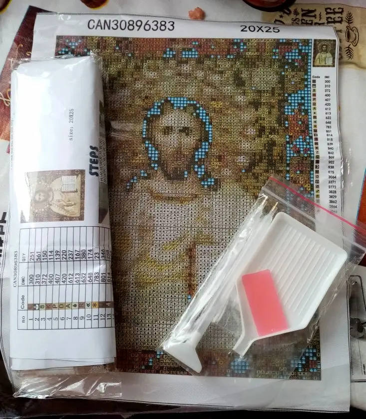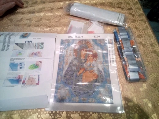 Посылку получила на удивление быстро, до Оренбурга шла 15дней, все стразы в полном комплекте, все собралось и ещё осталось, продавца рекомендую, но больше лики святых с полной выкладкой брать не буду, заказала попробовать, красиво, но... лицо и руки должны быть рисованные, я так считаю