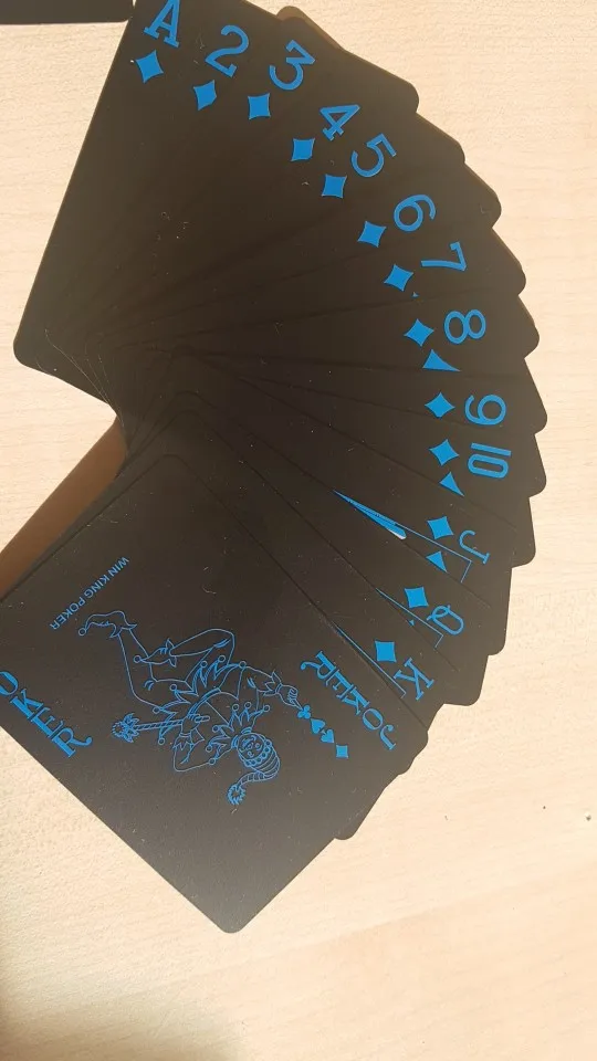 Удобные карты , единственное тёмные сливается , по этому советую , брать в другом цвете симпатичнее и приятнее на вид , плюс пластик( очень приятные для каких либо фокусов или в компании ), так же не страшна вода , по этому советую берите не пожалеете