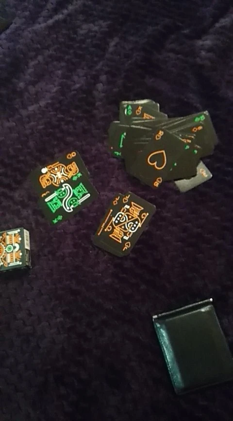 Светоотражающий свет Как только покрытие впитывает достаточно УФ-света, карты будут светиться в темноте Немного меньше, чем обычная игральная карта