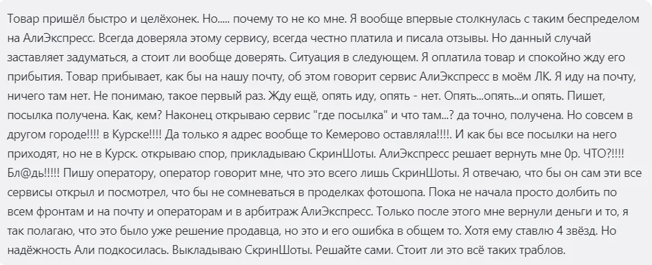 Товар пришёл быстро. Очень хороший товар, заказывала на обе руки, и на один уже писала отзыв. Сейчас хочу поделиться историей, которая со мной произошла тут, так как на тот товар, который я покупала, это сразу стало невозможно, после случившегося. Товра вдруг сразу не стало. Я с АлиЭкспресс с 13г. и такое впервые. Может кому поможет.