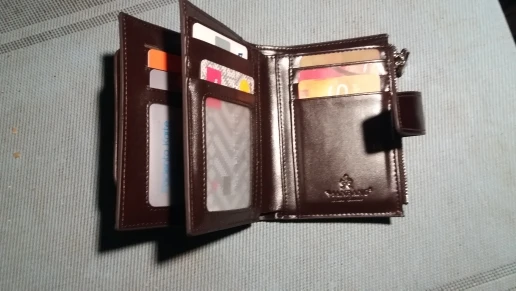 Отличный кошелек . Много ниш для карточек , удобный . Маленький минус налички много не положишь , и свидетельство регистрации ТС пришлось чуть подогнуть по шву