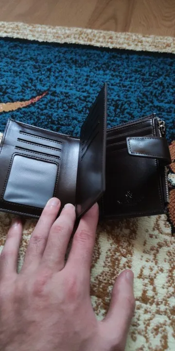Классный кошелёк ! Может , конечно и не кожа , но очень качественный . Похож на гладкую глянцевую (не лаковую) кожу . Очень удобный и функциональный . Два отдела для купюр . Для кого важно - техпаспорт авто входит с большим трудом , можно положить в отделение купюр , туда помещается отлично . Кнопка застёжки маловата , можно бы её и побольше сделать . В общем кошелёк достойный . Отправлено и доставлено достаточно быстро . Продавца рекомендую однозначно . Респект !