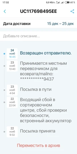 Страна: RU Color: White Доставка: Cainiao Super Economy 17.12.2020