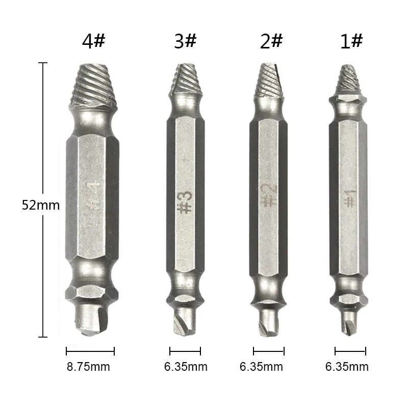 4 шт., сверло для извлечения поврежденных винтов, набор 1 #2 #3 #4 #, двухстороннее устройство для удаления сломанных болтов