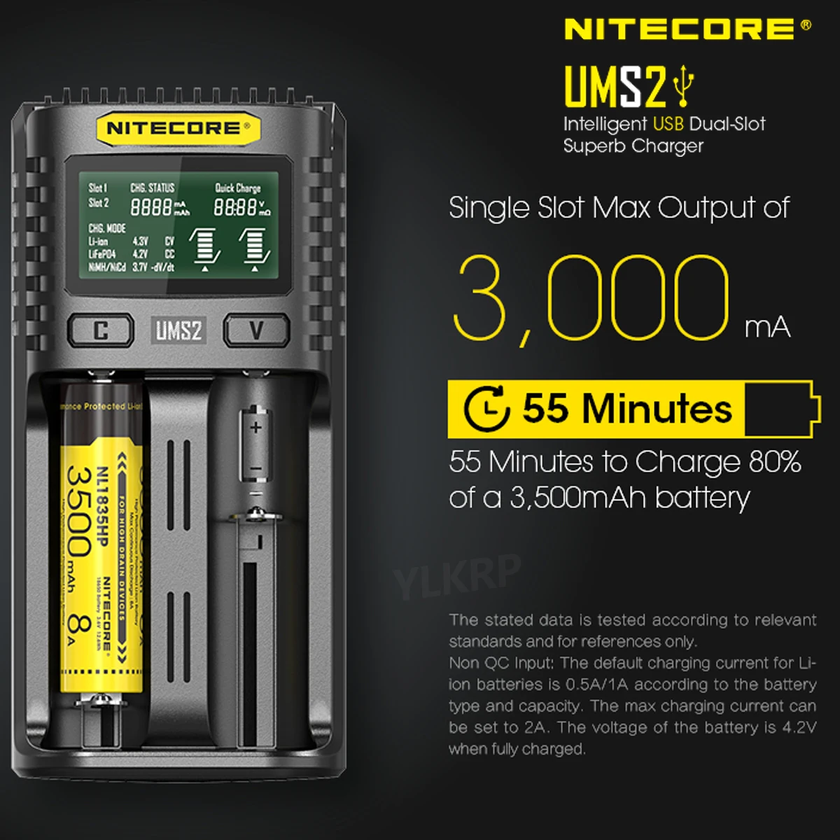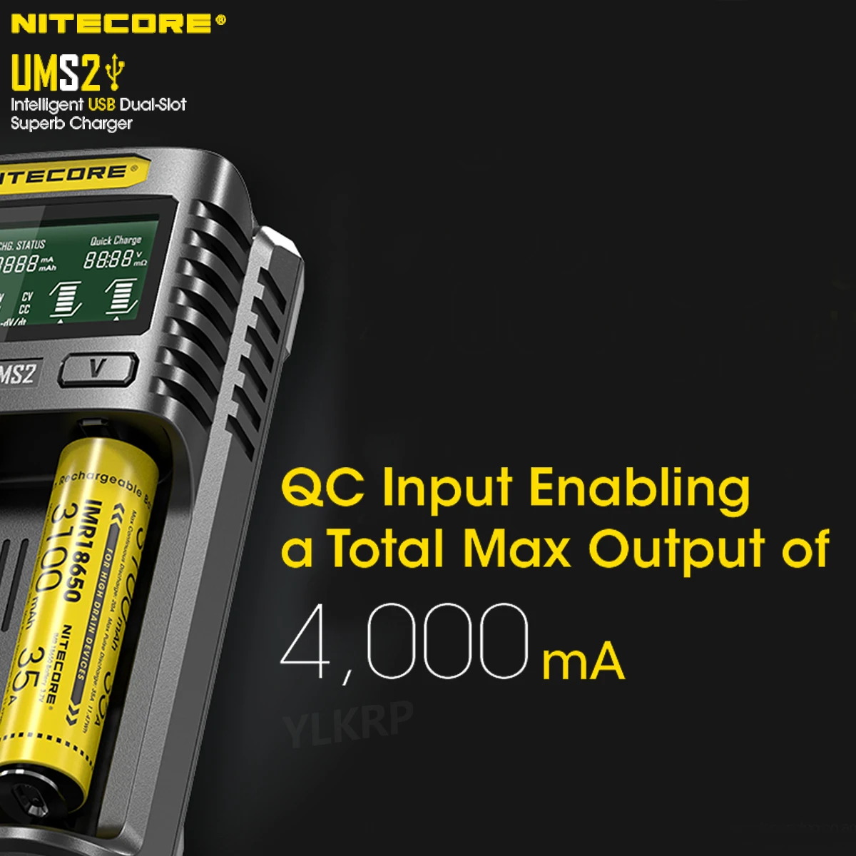 Зарядное устройство Nitecore UMS4, UMS2, умная быстрая зарядка, 4 А, мощный ток, многофункциональное зарядное устройство USB