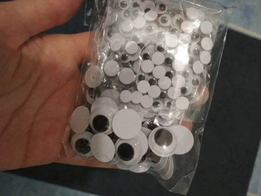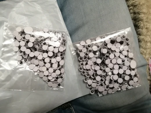 Доставка месяц. Укрпочта, Запорожье. Глазки качество хорошее. Приобретались для поделок. Плохо приклеиваются на что то мягкое и пушистое. Пришлось использовать B7000. На гладкую поверхность хорошо.