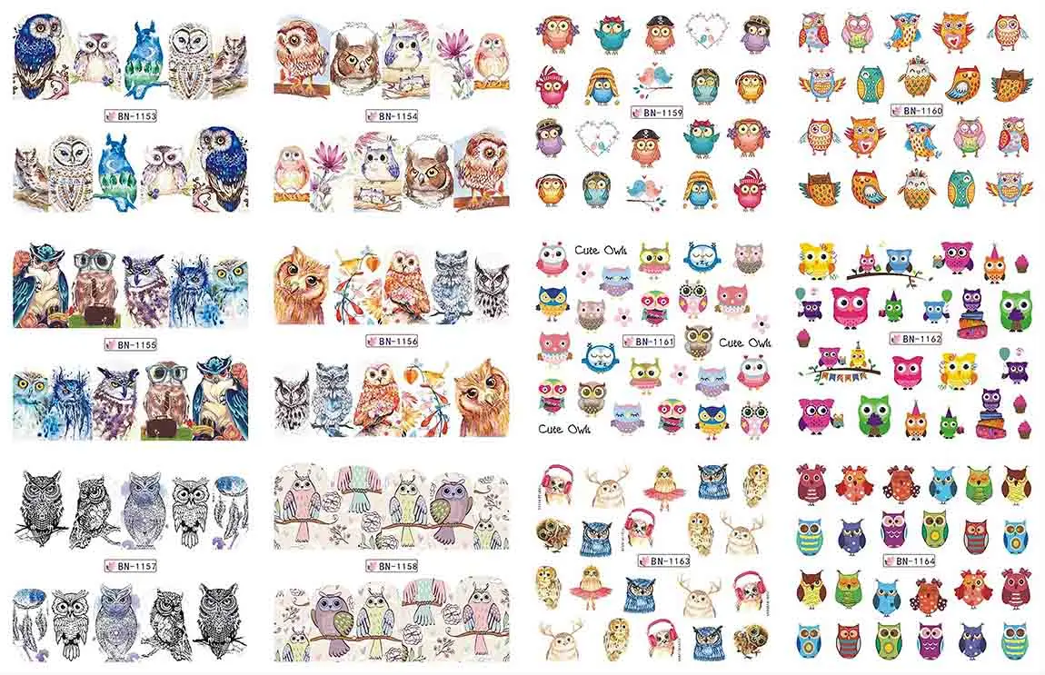 12 видов милых мультяшных стикеров совы, Водные Наклейки для ногтей...