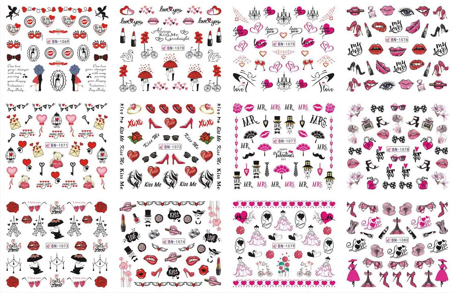 12 шт., декоративные наклейки для ногтей, на День святого Валентина